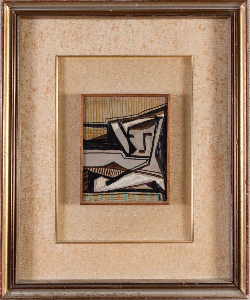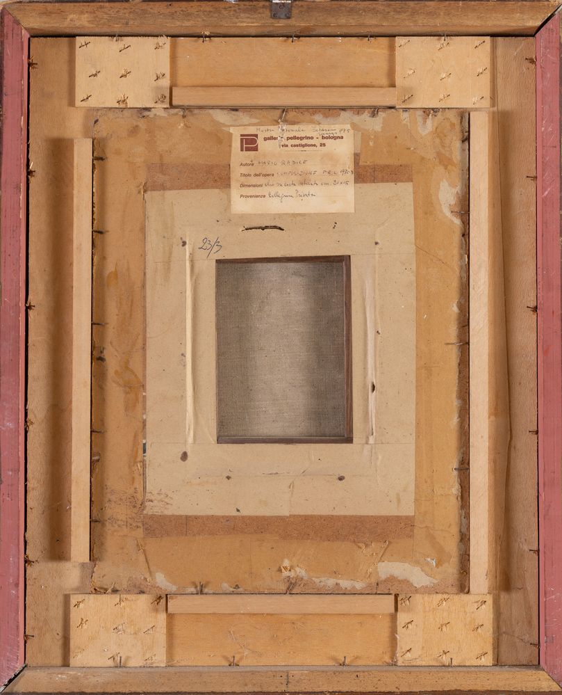 MARIO RADICE (Como 1898 - 1987) "Composizione P.E.L", 1931. Olio su carta intelata. Cm 21x16. Opera firmata in alto a sinistra Radice. Al retro reca etichetta della Galleria Pellegrino, Bologna. Opera accompagnata da autentica a firma Rosetta Radice Martini. Esposizioni: mostra personale dell'artista, febbraio - marzo 1975, Bologna.