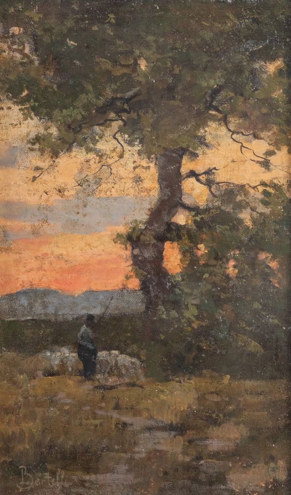 LUIGI BERTELLI (San Lazzaro di Savena 1833 - Bologna 1916) "Gregge al tramonto