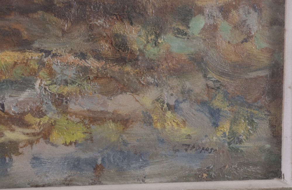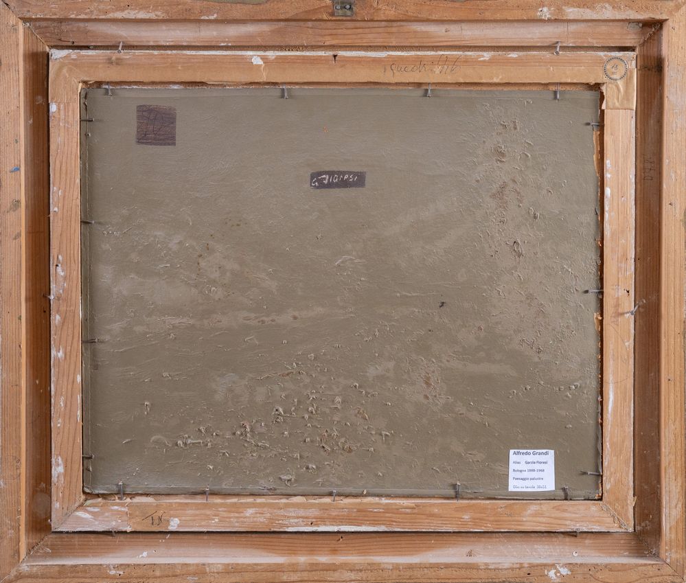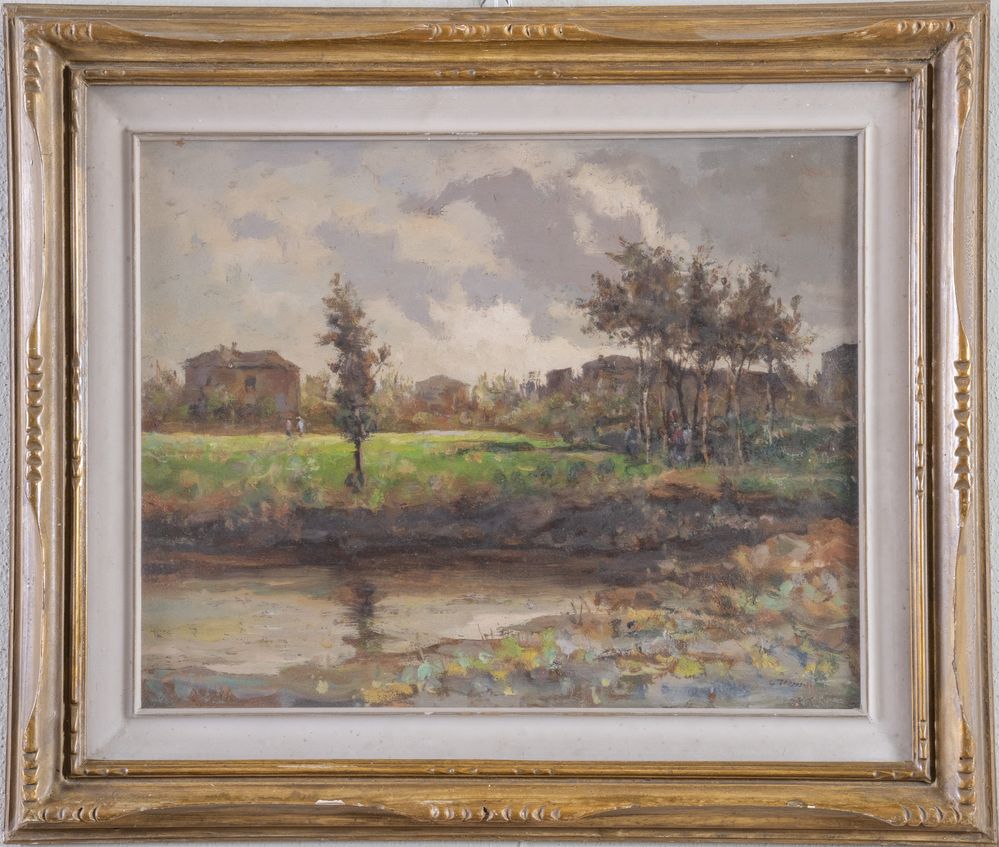 GARZIA FIORESI (Vigevano 1888 – Bologna 1968) "Paesaggio palustre". Olio su tavola. Cm 40x50. Opera firmata in basso a destra G. Fioresi. Al retro opera firmata G. Fioresi.