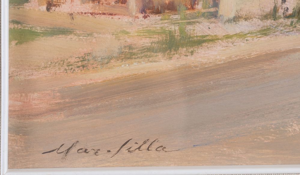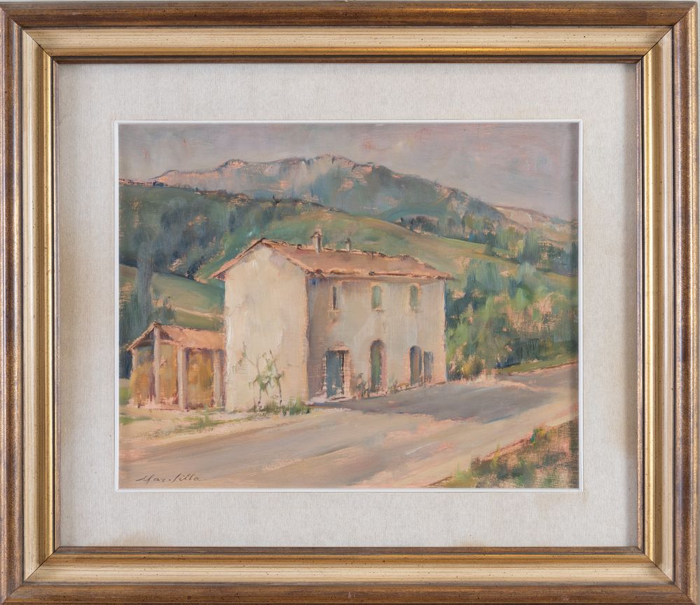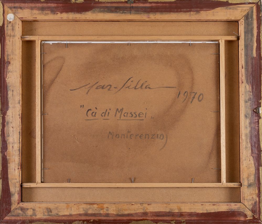 MARTUFFI SILLA detto MAR SILLA (Cento 1902 - Bologna 1979) "Ca di Massei", 1970. Olio su tavola. Cm 40x50. Opera firmata in basso a sinistra Mar-silla. Al retro opera firmata, datata e intitolata Mar-silla, 1970, Ca di Massei.