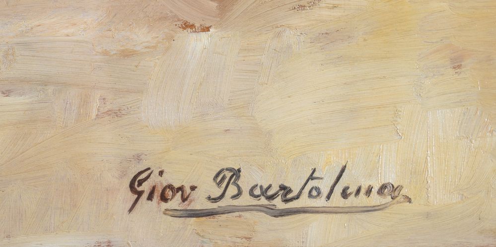 GIOVANNI BARTOLENA (Livorno 1866 – 1942) "Funghi". Olio su tavola. Cm 29x50. Opera firmata in basso a destra Giov. Bartolena. Al retro reca firmata per autentica. Al retro reca timbro della Galleria d'Arte SACVA, Bologna.