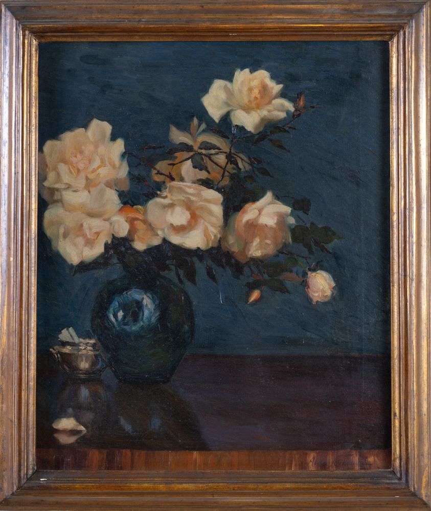 ALDO SEVERI (Macerata 1876 - Roma 1956) "Vaso di fiori". Olio su tela. Cm 59x49. Opera firmata in basso a destra Aldo Severi.