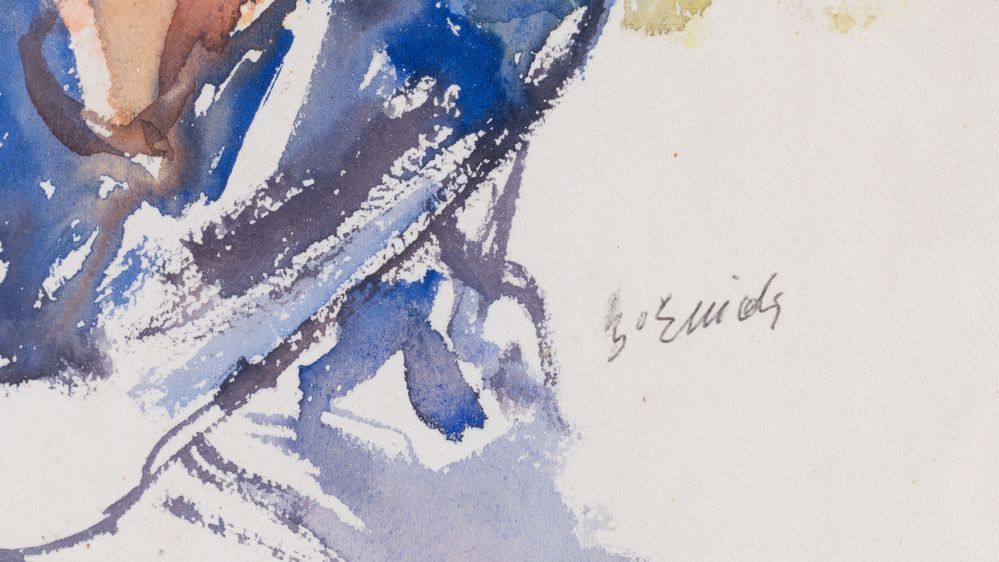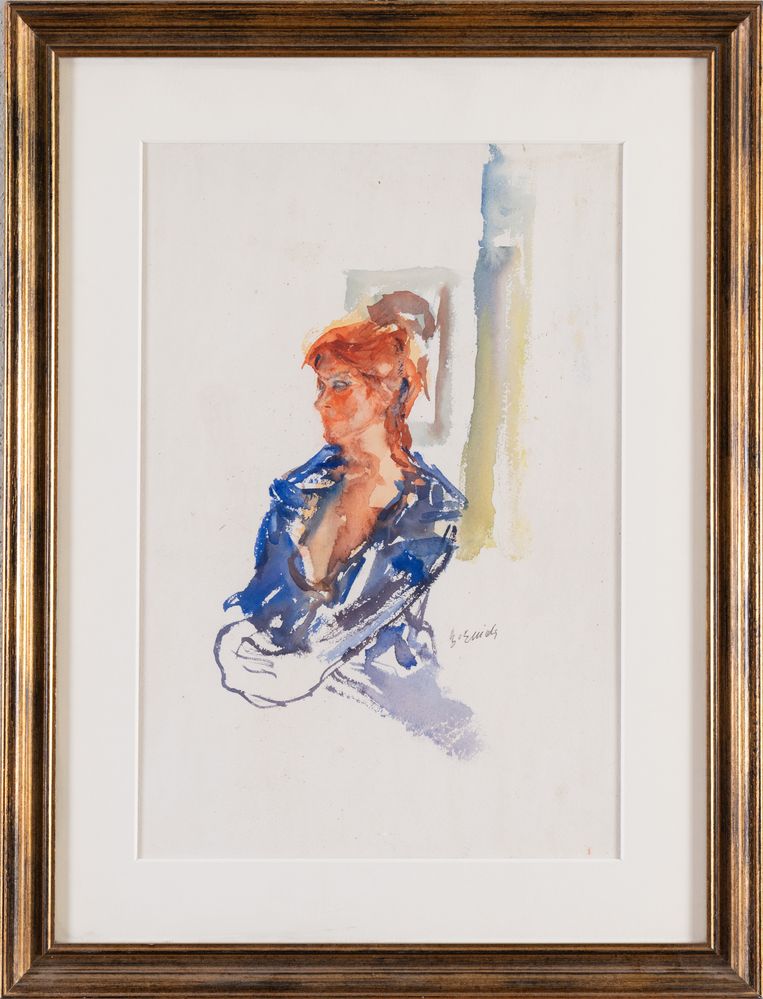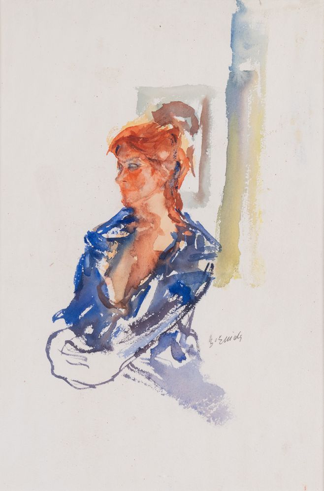 UGO GUIDI (Bologna 1923 - 2007) "Ritratto". Tecnica mista su carta. Cm 43x29....