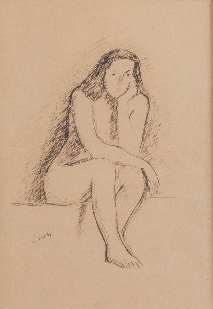 VIRGILIO GUIDI (Roma 1891 – Venezia 1984) "Nudo di donna". China su carta. Cm...