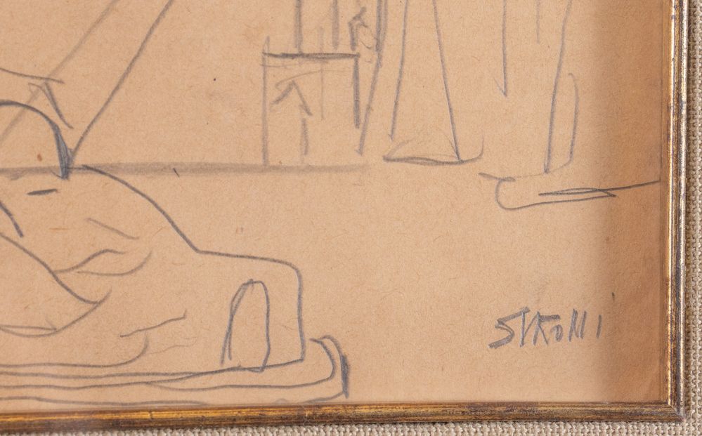 MARIO SIRONI (Sassari 1885 - Milano 1961) "Senza titolo". Matita su carta. Cm...
