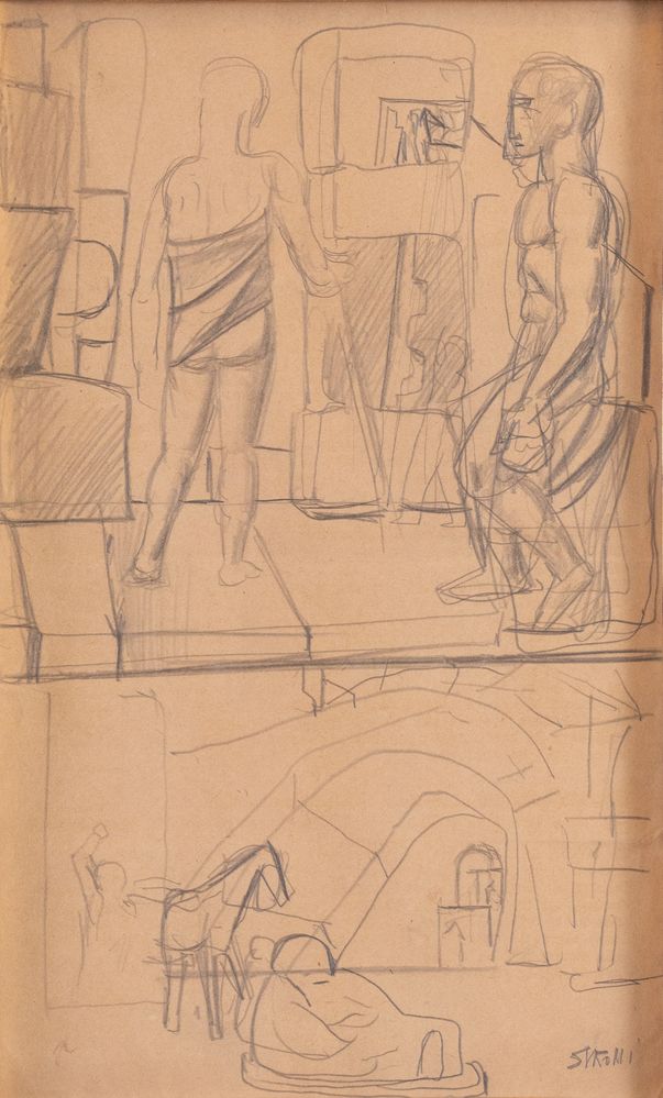 MARIO SIRONI (Sassari 1885 - Milano 1961) "Senza titolo". Matita su carta. Cm 33x20,5. Opera firmata in basso a destra Sironi.