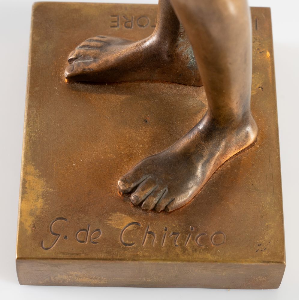 GIORGIO DE CHIRICO (Volo 1888 - Roma 1978) "Il gladiatore". Scultura in bronzo. Cm 31x10x7. Opera firmata e intitolata alla base G. De Chirico Il gladiatore.