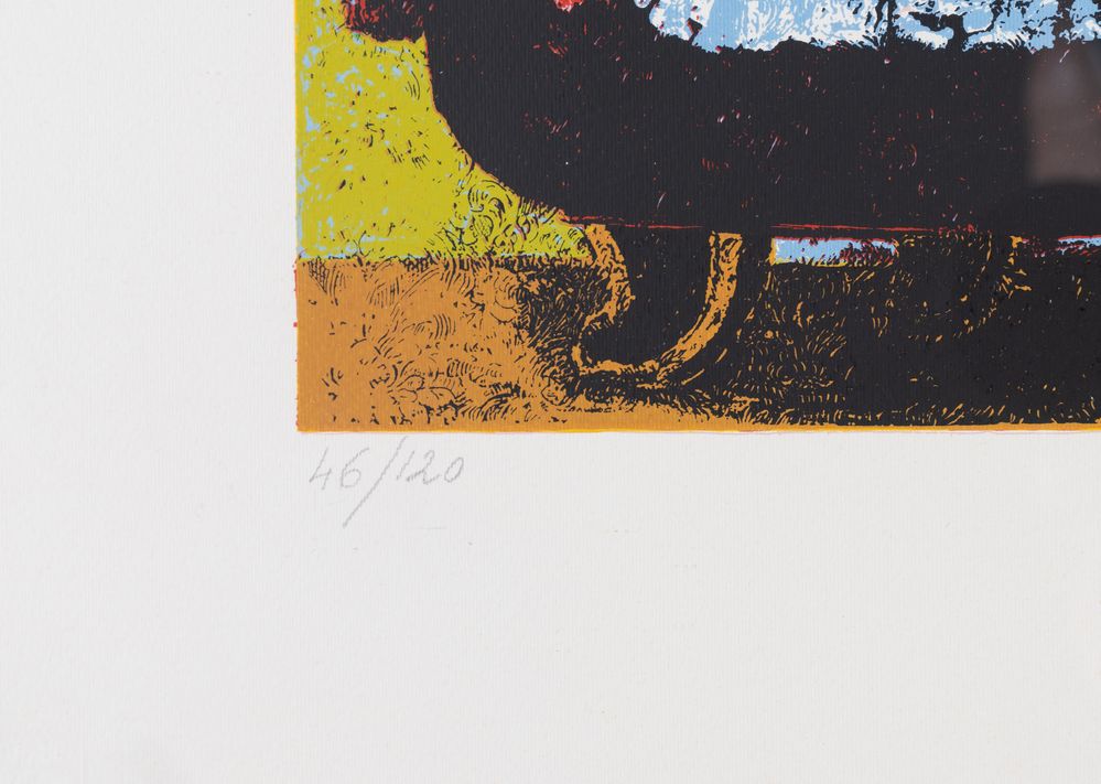 SALVATORE FIUME (Comiso 1915 - Milano 1997) "Odalisca". Litografia a colori...