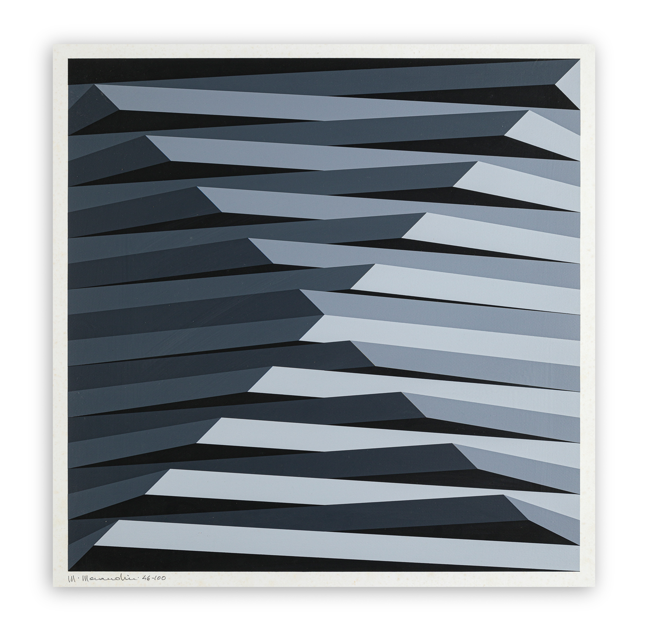 Firma e numerazione (Esemplare 46/100) a matita al fronte