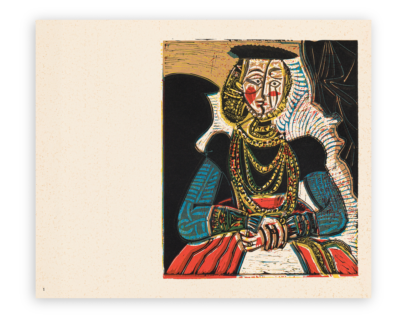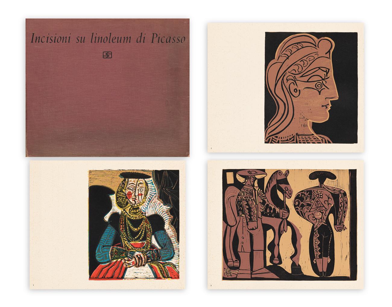 Edizione d'arte recante introduzione di Wilhelm Boeck e 45 riproduzioni sciolte di incisioni su linoleum di Pablo Picasso facenti dalla collezione della Galleria Louise Leiris di Parigi