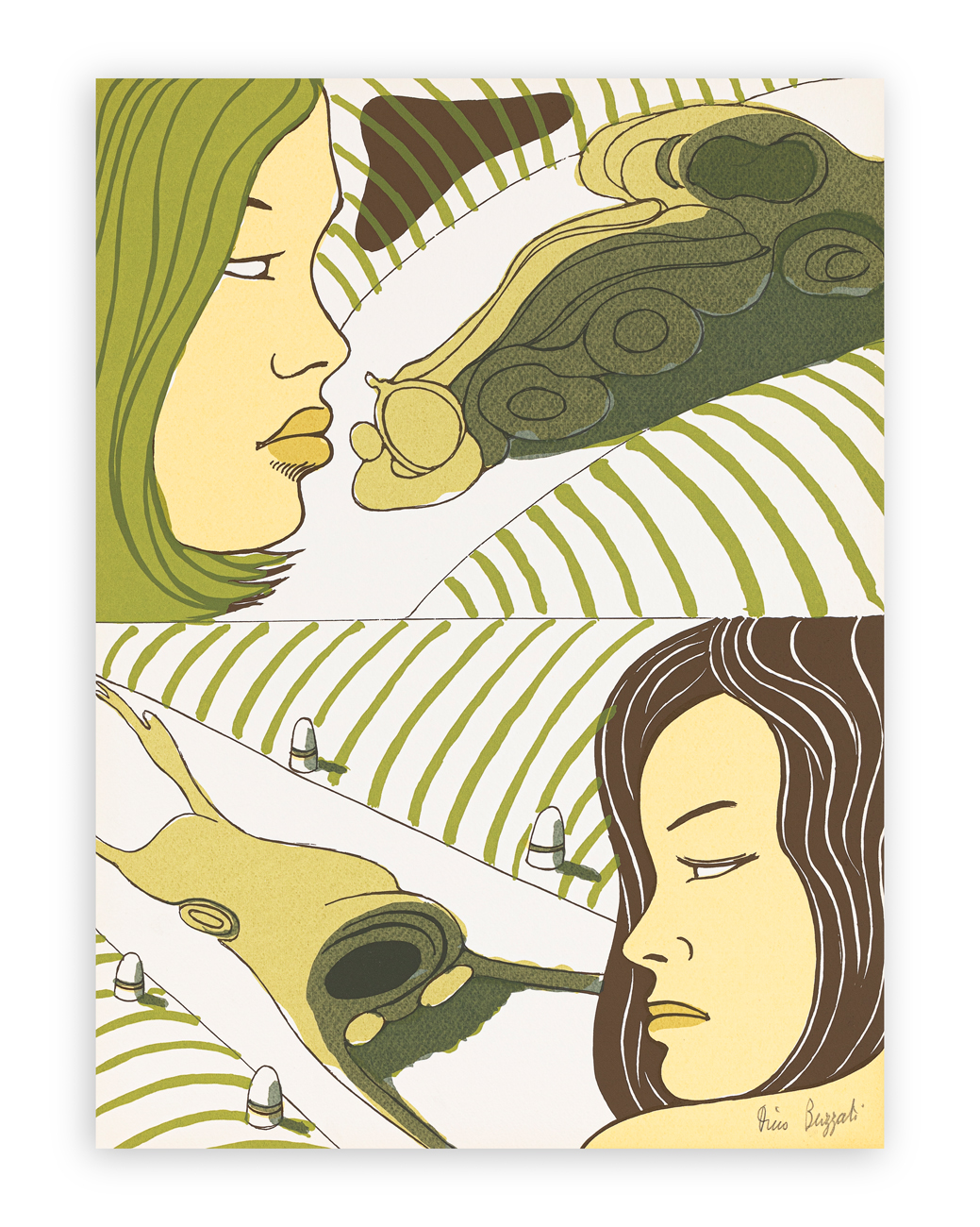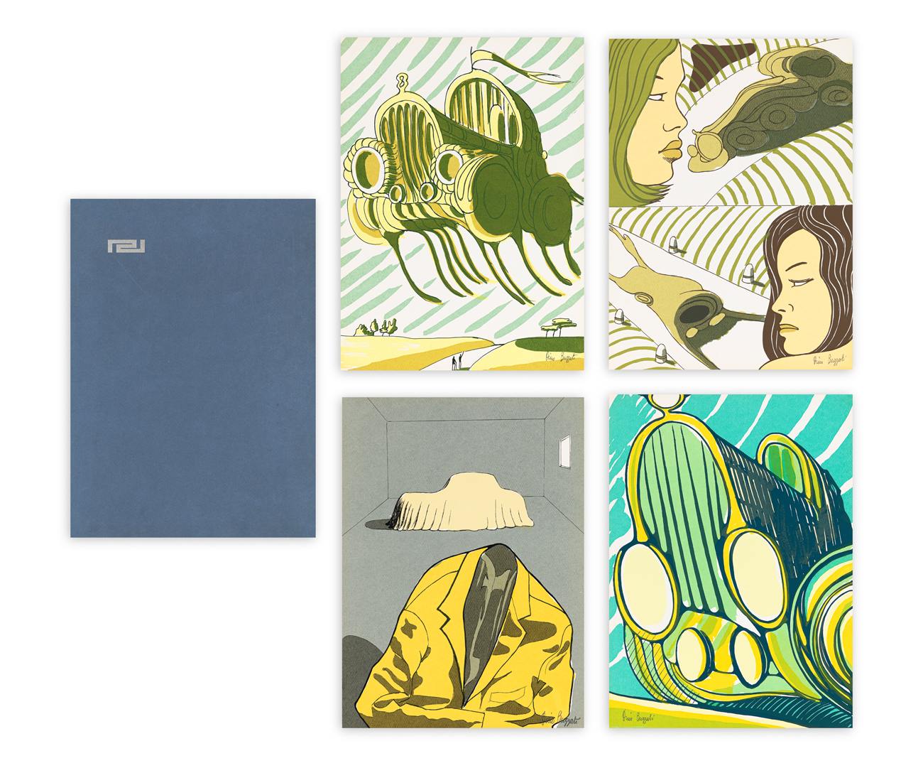 Cartella contenente prefazione di Enrico Lossa, testo e 4 serigrafie di Dino Buzzati, ciascuna recante firma a matita al fronte