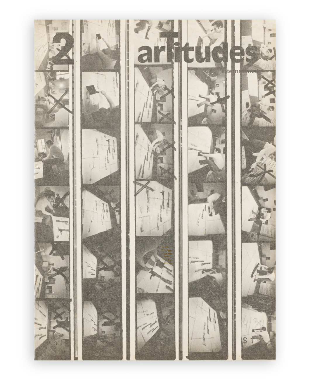 Numero 2 della rivista ArTitudes International diretta da François Pluchart contenente un multiplo in serigrafia e collage su cartoncino di Michael Journiac firmato, datato e numerato (Esemplare 4/30) ed il poster "Cadeau pour les partisans de la peine de mort, par Henri Maccheroni"