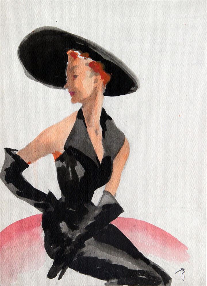 Lot 49 | GOLIA (Eugenio Colmo) Torino 1885 - 1967 "Elegante in nero" 1952 33,5x24,5...