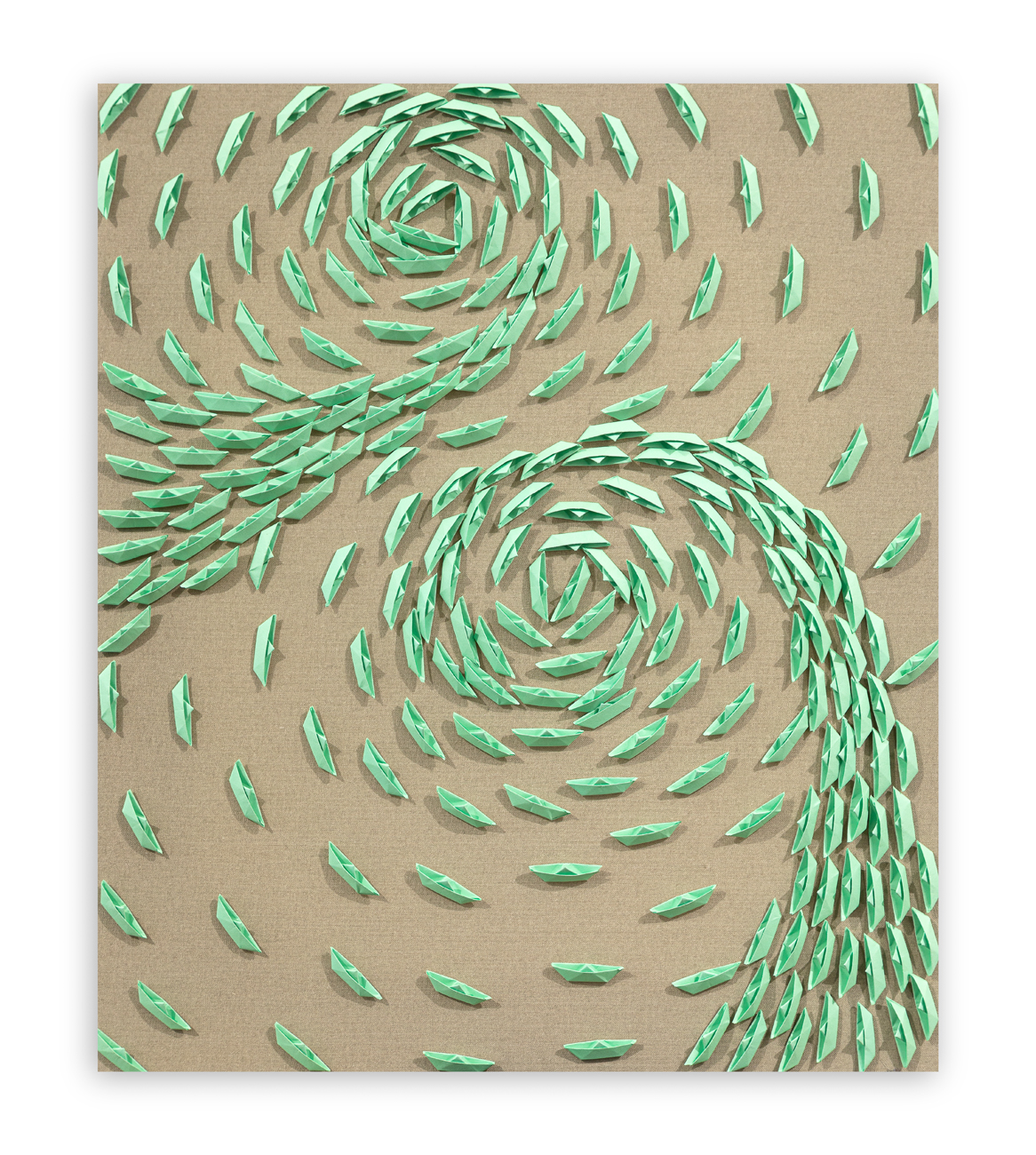 Barche di carta su tela dipinta