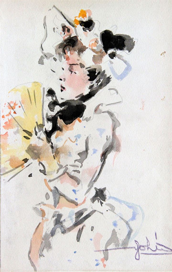GOLIA (Eugenio Colmo) Torino 1885 - 1967 "Parigina" 1947 30x19 tecnica mista...