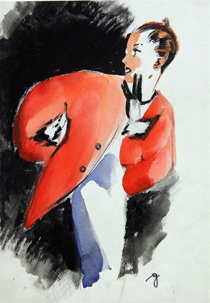 GOLIA (Eugenio Colmo) Torino 1885 - 1967 "La giacca rossa" 1955 33,5x23...