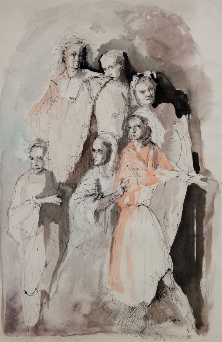 LEPRI STANISLAO Roma 1905 - 1980 Parigi "Figure" 45,4x29 china e acquerello...