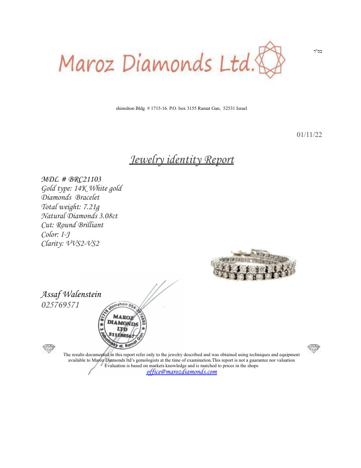BRACCIALETTO IN ORO BIANCO 14K 7.21 GR CON DIAMANTI PER 3.08 CT I-J/VS-VVS CERTIFICATO ID - BRC21103