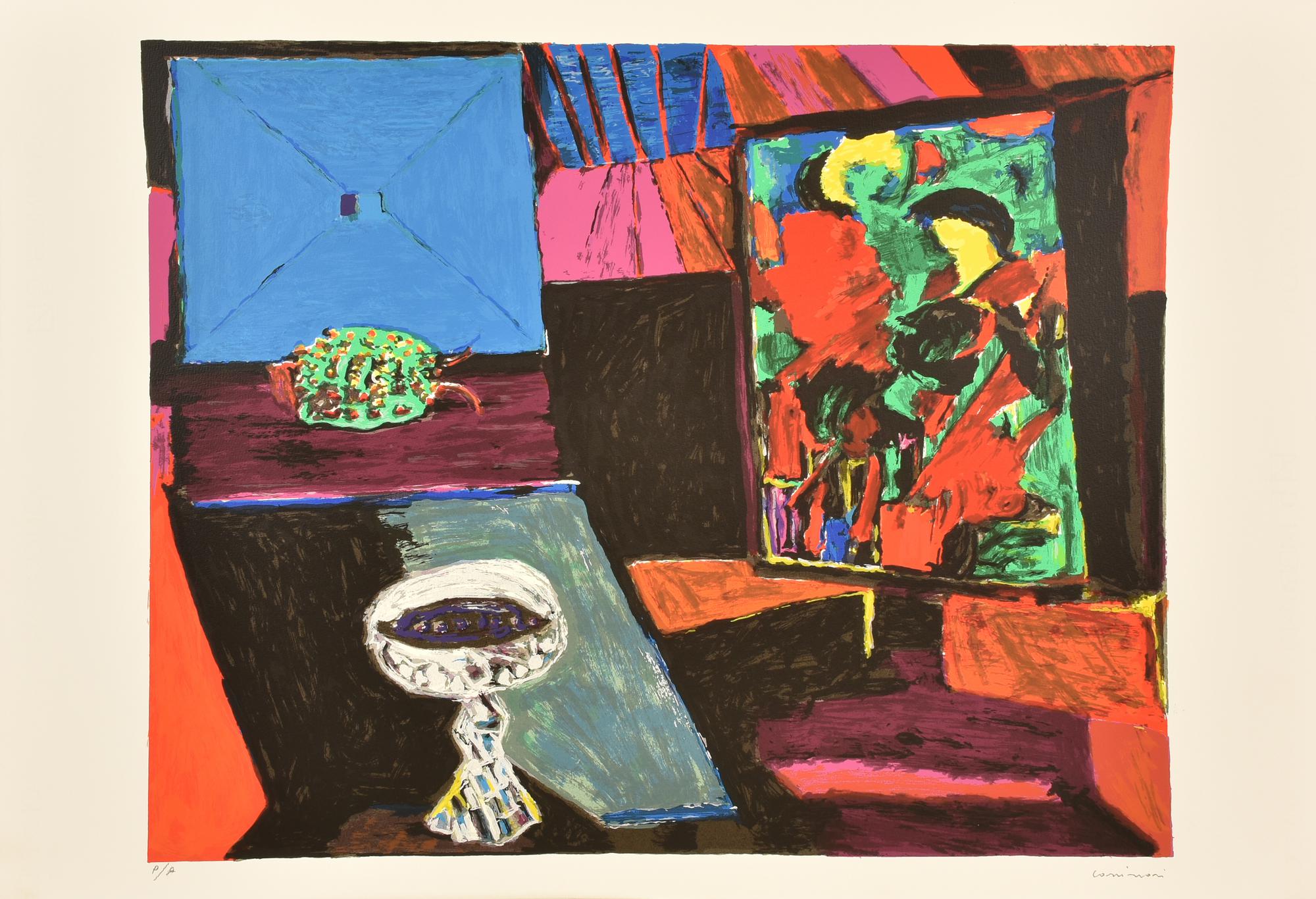 Bruno Cassinari INTERNO CON COPPA serigrafia su carta Fabriano, cm 50x70; es....