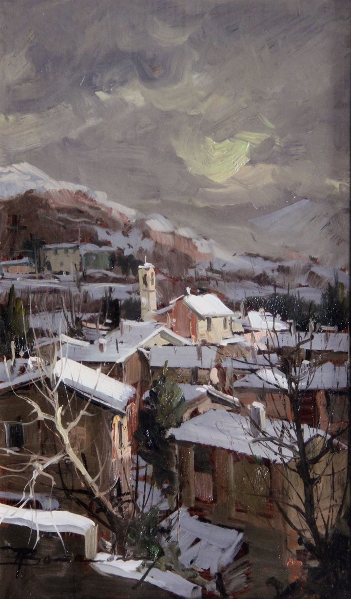 BONANOMI ARTURO Calolziocorte (LC) 1920 "Borgo montano" 40x25 olio su...