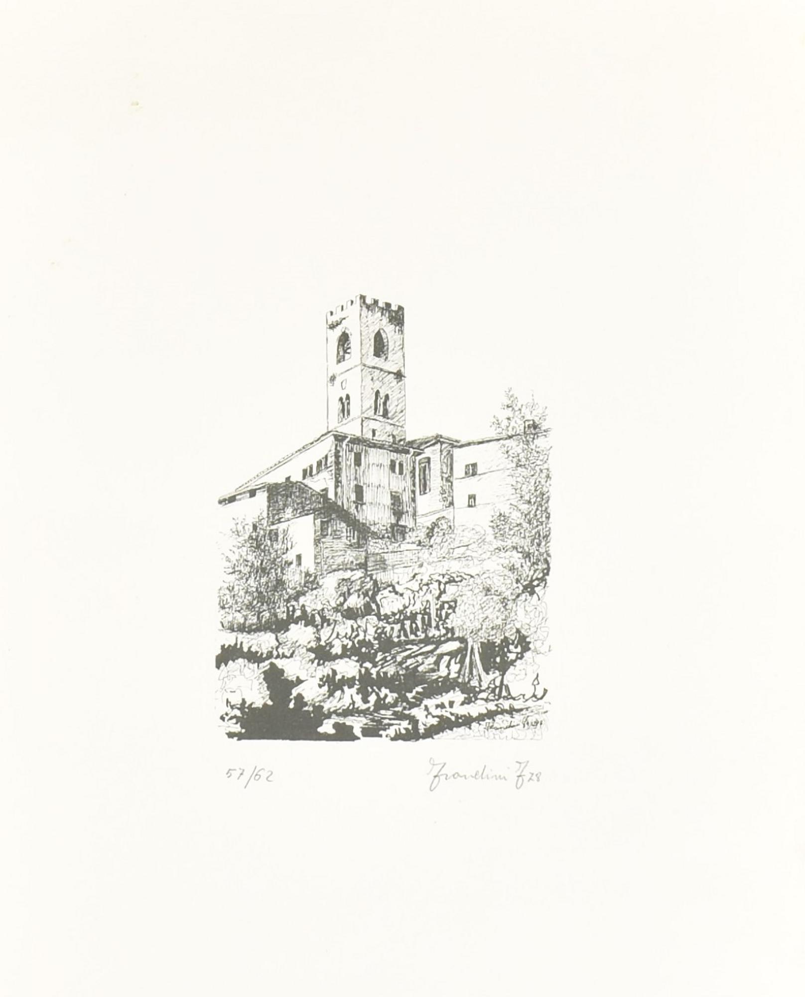 F. Franchini CASTELLO incisione su carta, battuta cm 18x14, su foglio cm...