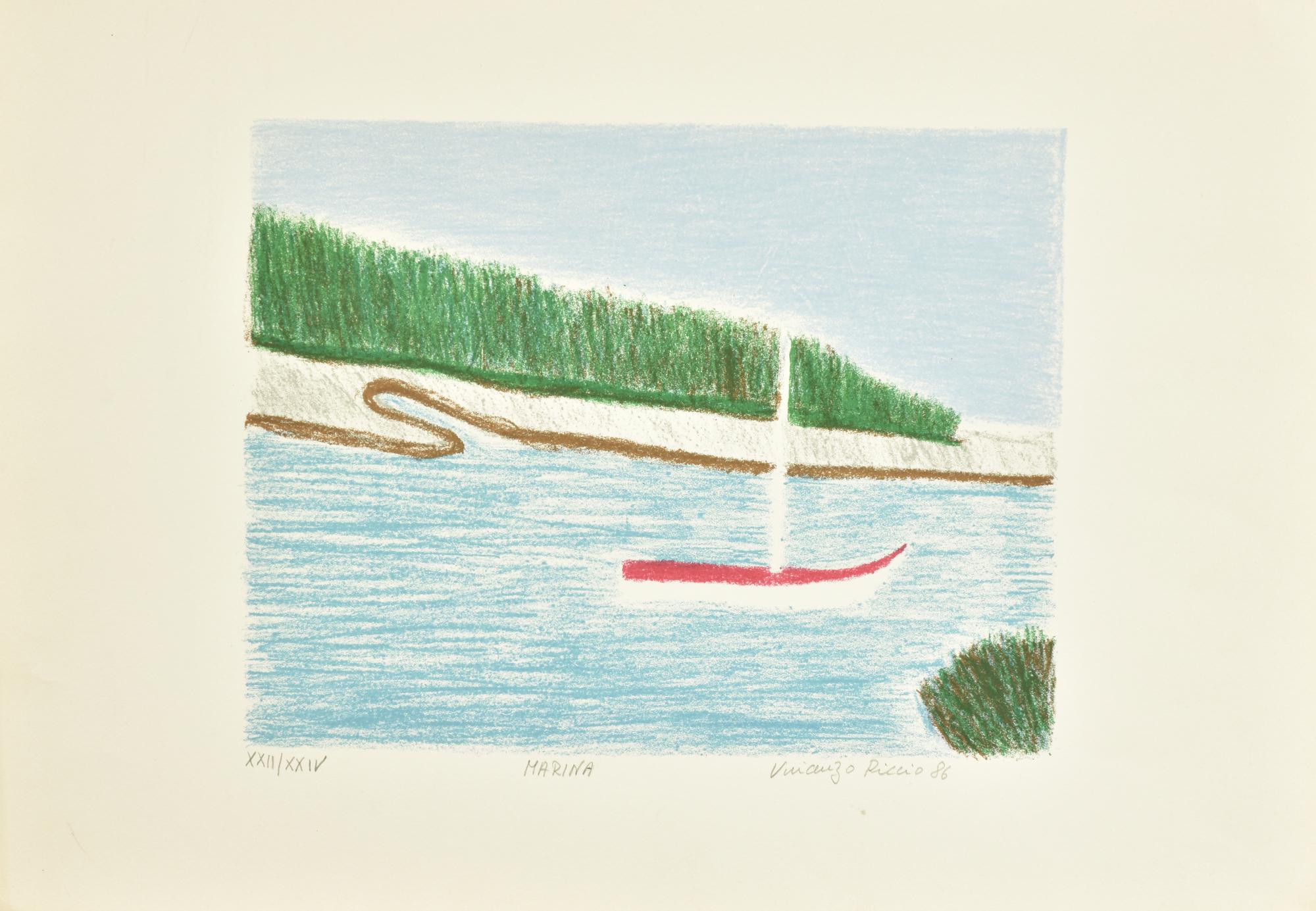Vincenzo Riccio MARINA litografia su carta, cm 35x50, es. XXII/XXIV firma,...