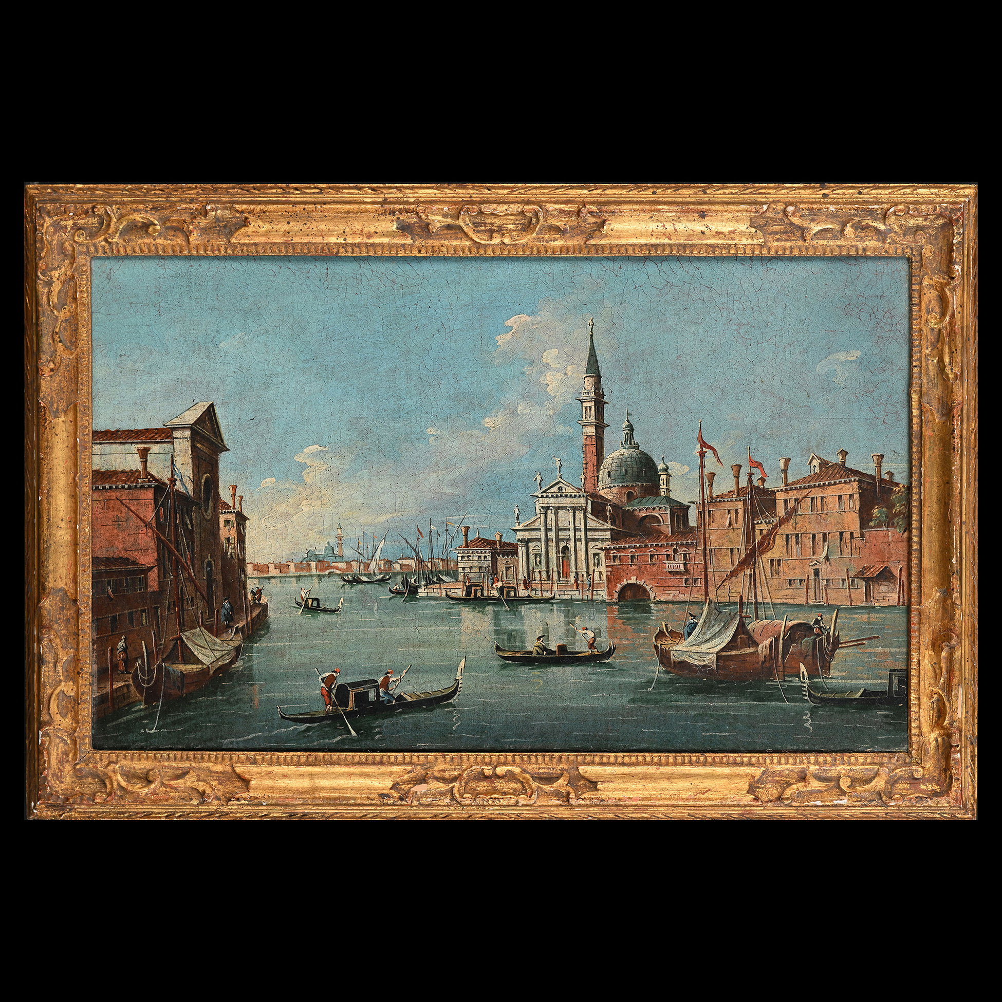 Francesco Zanin (Nove, 1824 – Venezia, 1884), attr.a, Veduta della Basilica di San Giorgio Maggiore a Venezia Olio su tela, dimensioni ext. 37,5x57, int. 29,5x50 cm.