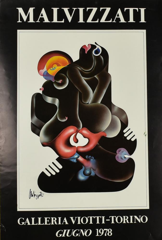 MALVIZZATI manifesto, 70x46.5cm Realizzato dalla galleria Viotti di Torino...