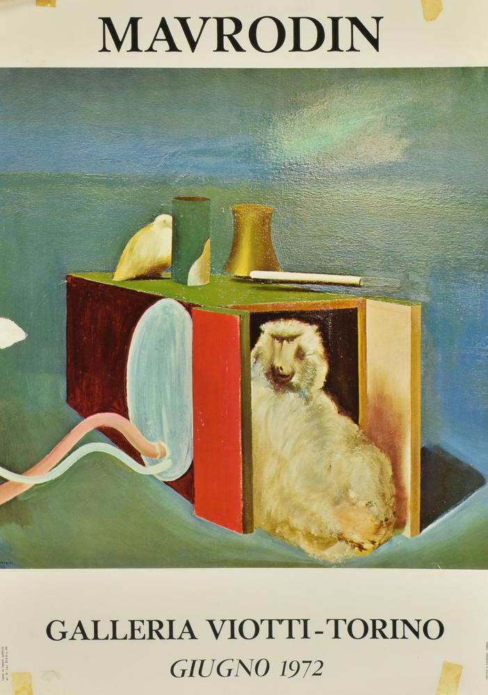 manifesto cm 70x50, realizzato da A.Camedda, Torino per la mostra 'Mavrodin' tenutasi alla Galleria Viotti di Torino nel Giugno 1972