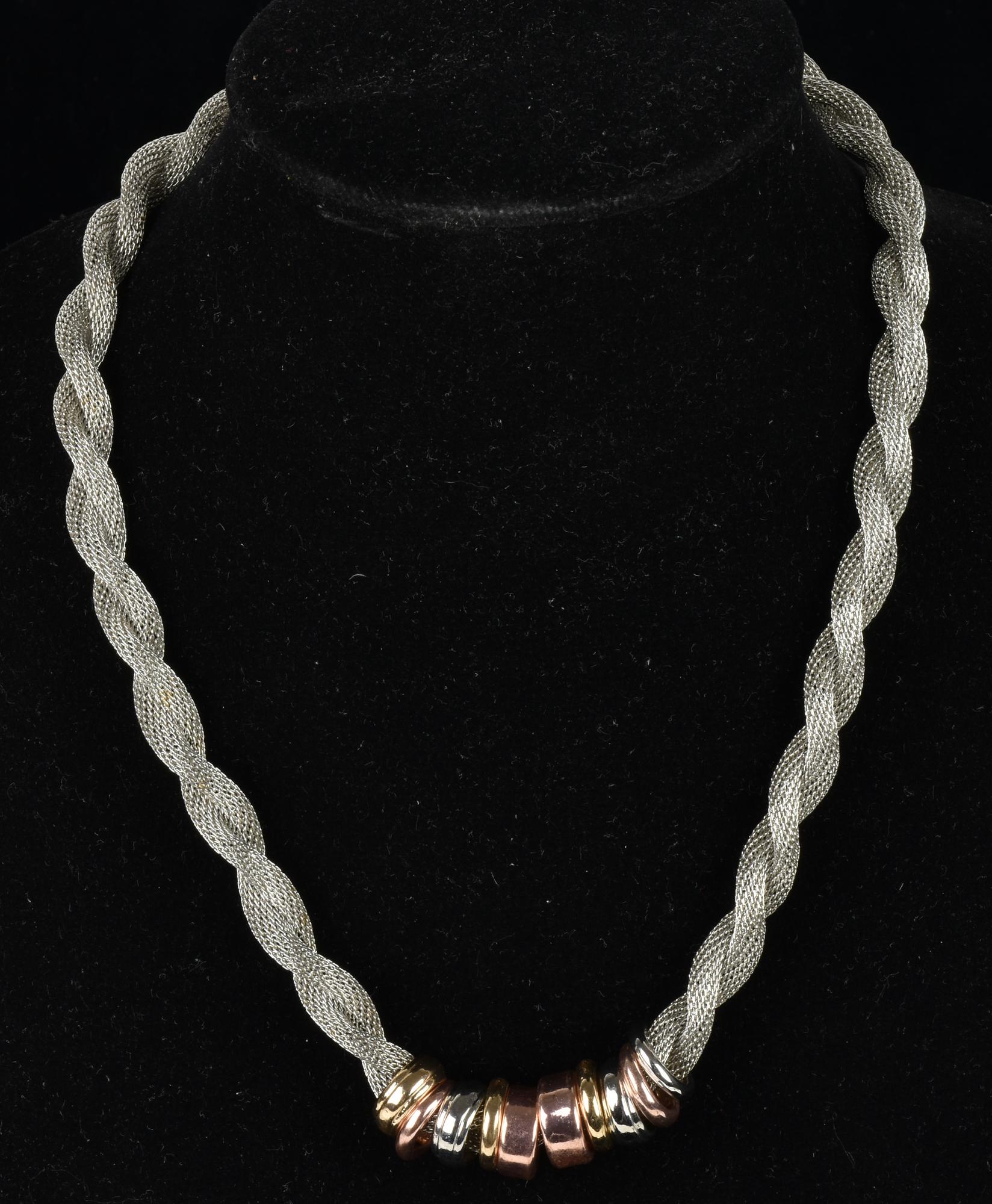 COLLANA a due fili intrecciati e anelli come pendenti Italia, anni '80...