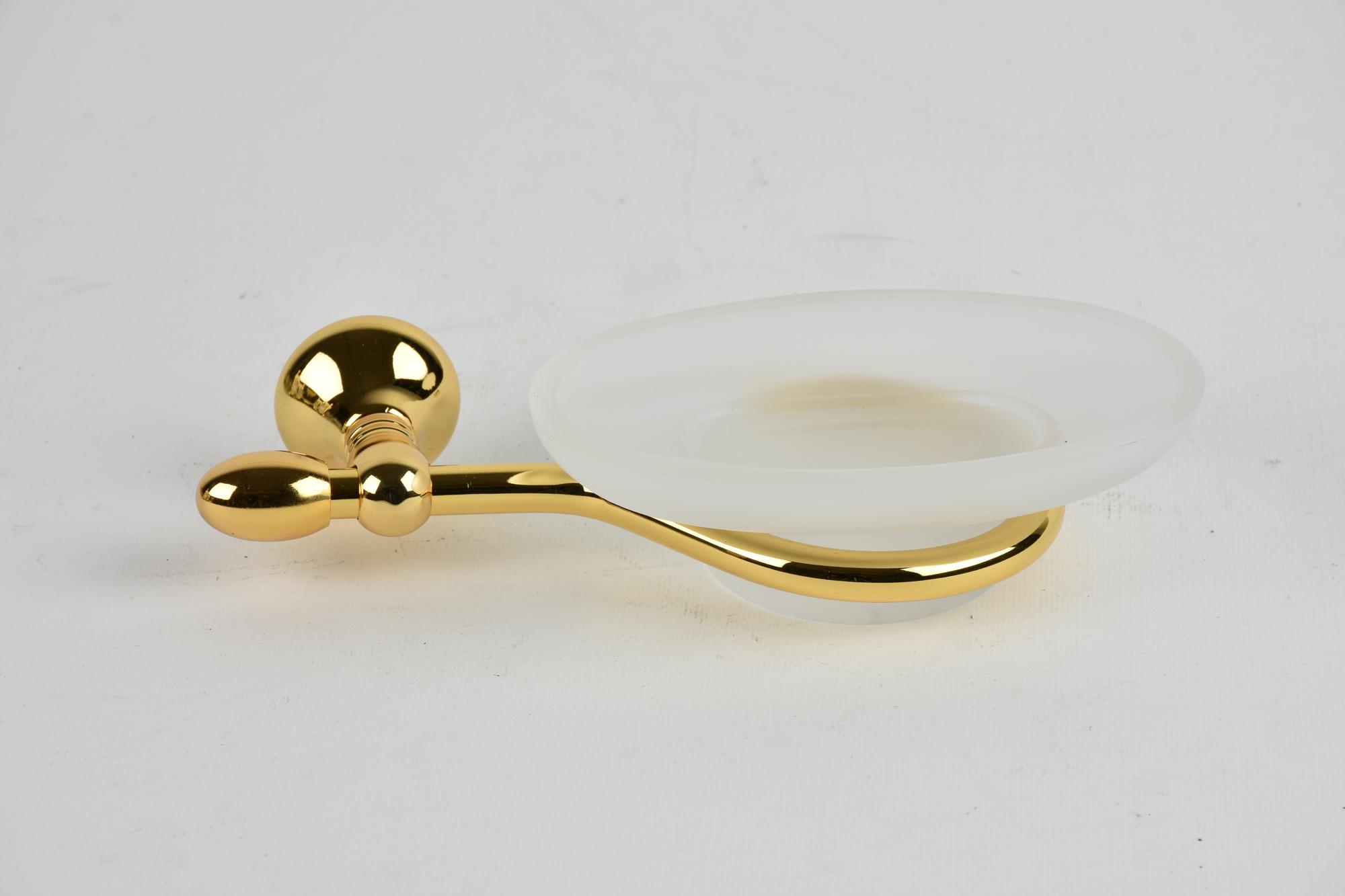 PORTA SAPONE A MURO in metallo dorato e vetro opaco cm 20