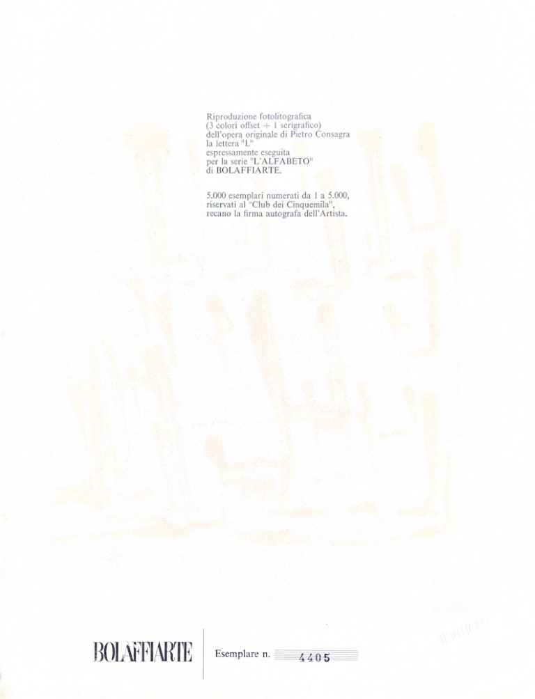 'La lettera L' espressamente eseguita per la serie 'L'alfabeto' di Bolaffiarte