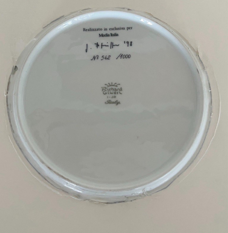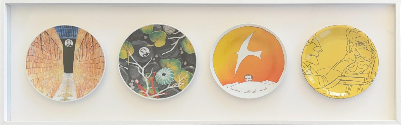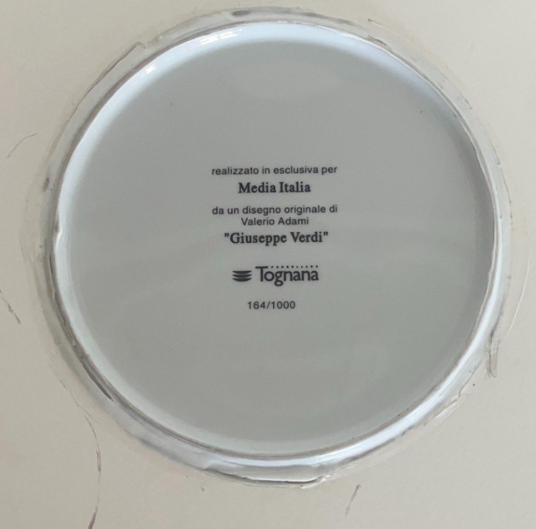 Lotto di 4 piatti dedicati a Giuseppe Verdi, serigrafati da disegni di artisti vari in esclusiva per Media Italia Porcellane Tognana e Richard Ginori, entro cornice
