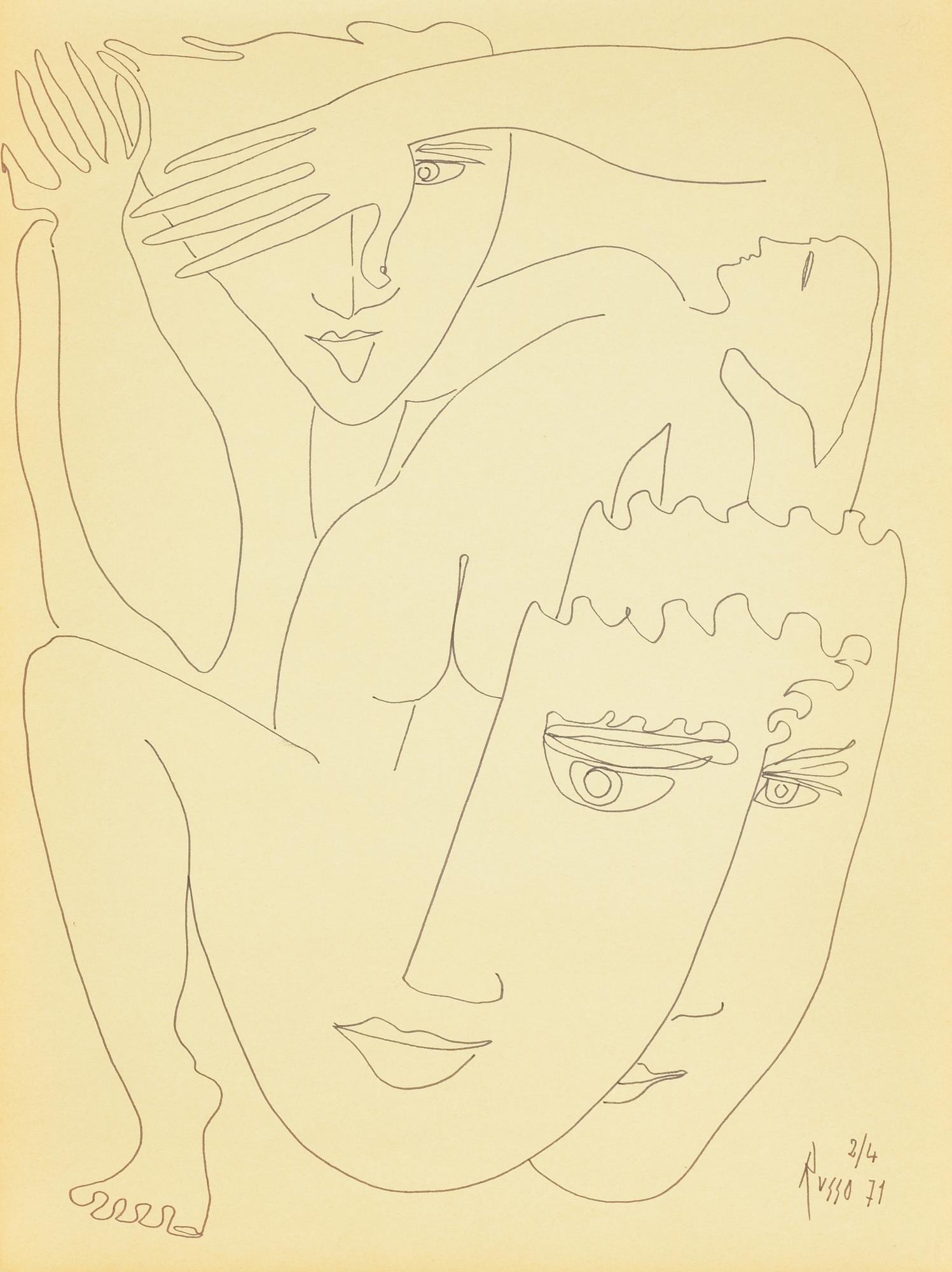 Russo VISI DI DONNA pennarello su carta, cm 40x30 firma e data eseguito nel 1971