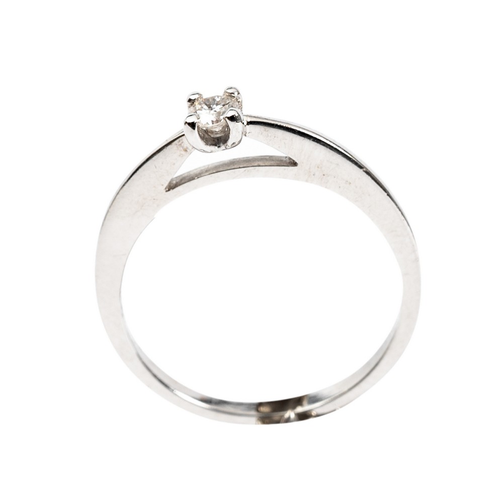 ANELLO solitario in oro bianco 18 KT con diamante taglio brillante ct. 0,13 I color VS1 (g. 2,20).