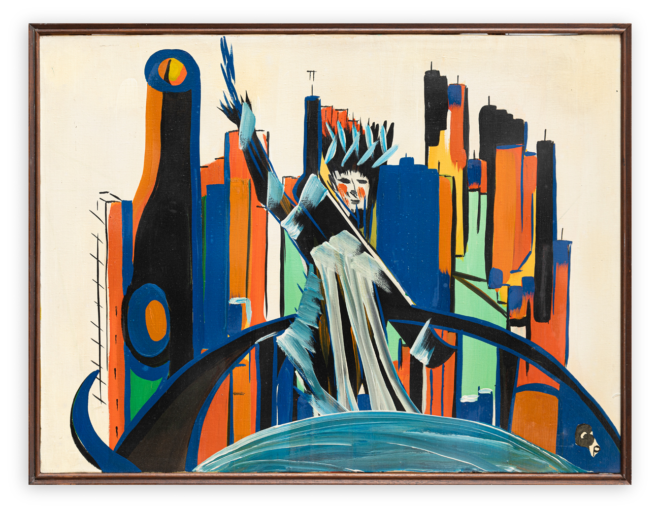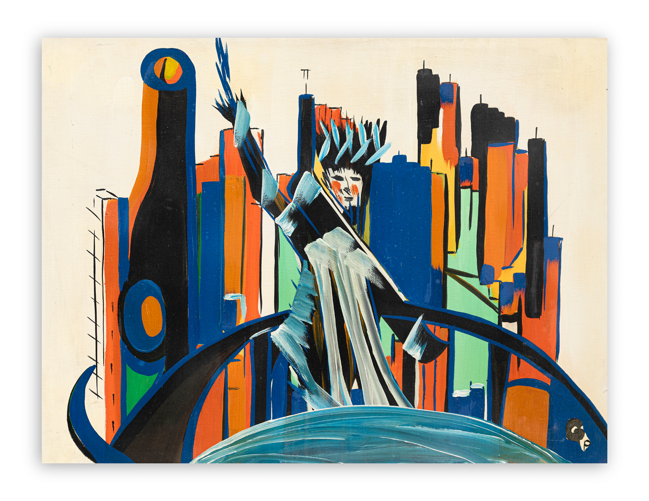 GIORDANO PAVAN (1926) - N.Y. Statua Libertà con sfondo grattacieli, 1968