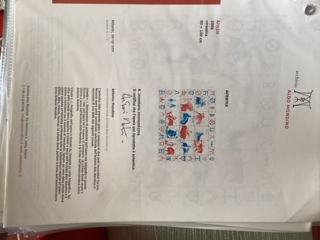 Certificato di autenticitàOpera archiviata, presente documento archivio Aldo Mondino.