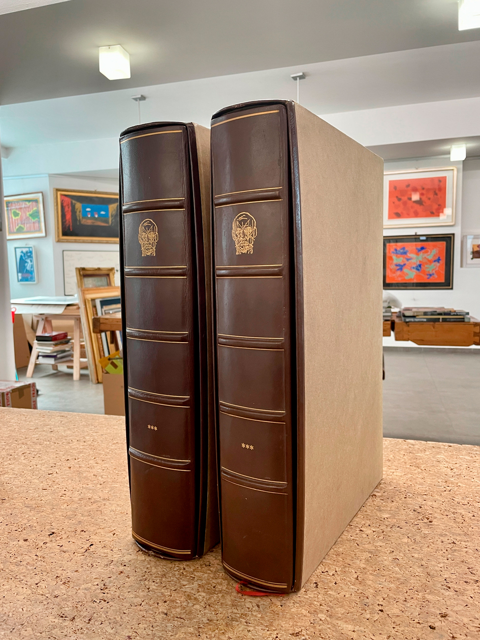 Edizione pregiata composta da due imponenti volumi riccamente illustrati realizzati su carta a mano tipo Acquarello della Cartiera Fedrigoni: