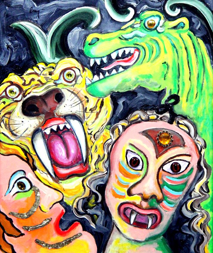 BAJ ENRICO Milano 1924 - 2003 Vergiate "Tre belve" 1991 60x50 tecnica mista e...