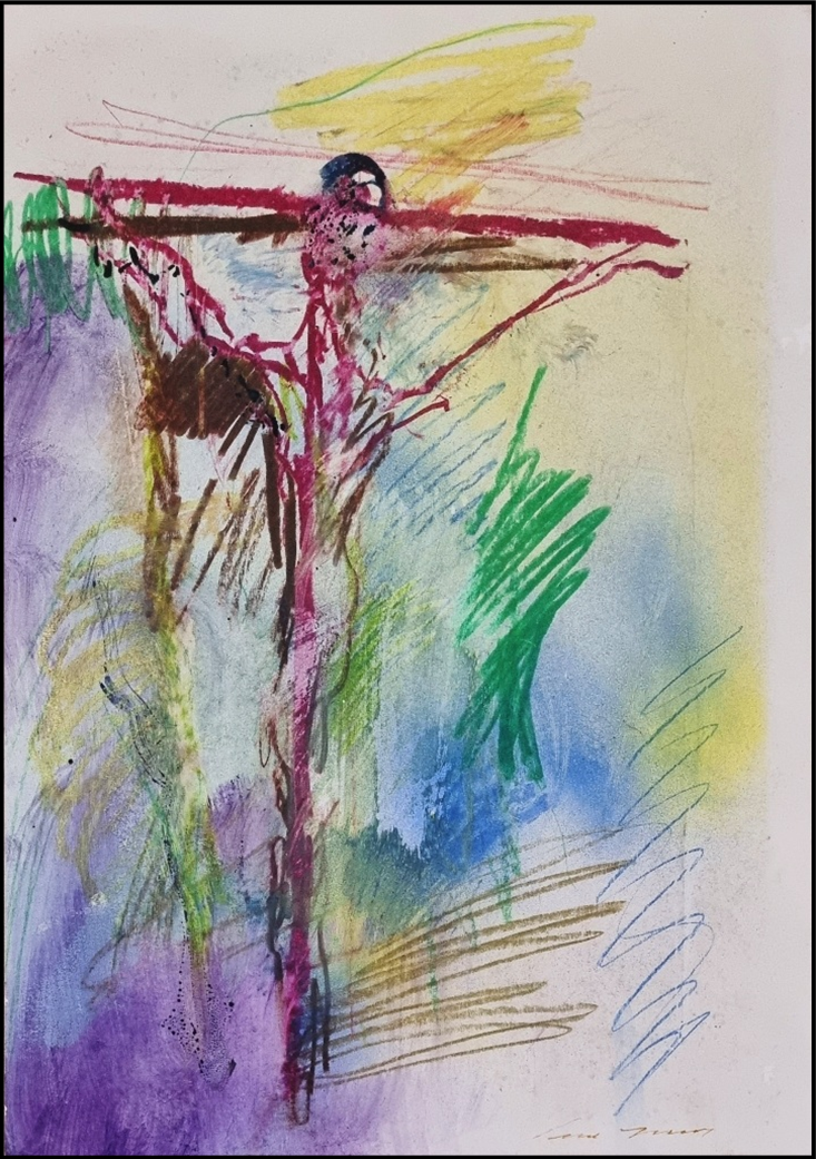 TRECCANI ERNESTO Milano 1920 - 2009 "Senza titolo" Tecnica mista su cartone pesante cm 35x50. Firmata sul fronte in basso a sinistra.