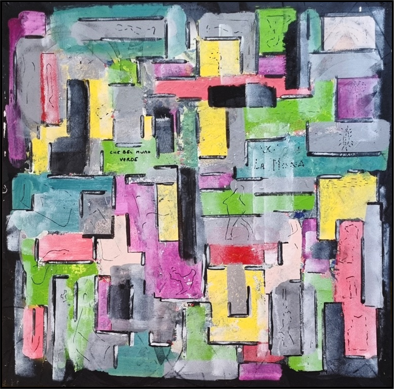 CROTTI DALILA Italia 1983 "Pop-up" Acrilici su tela cm 100x100 del 2004. Sul retro firma, data, tecniche, misure e certificato d'archiviazione a cura dell'artista.