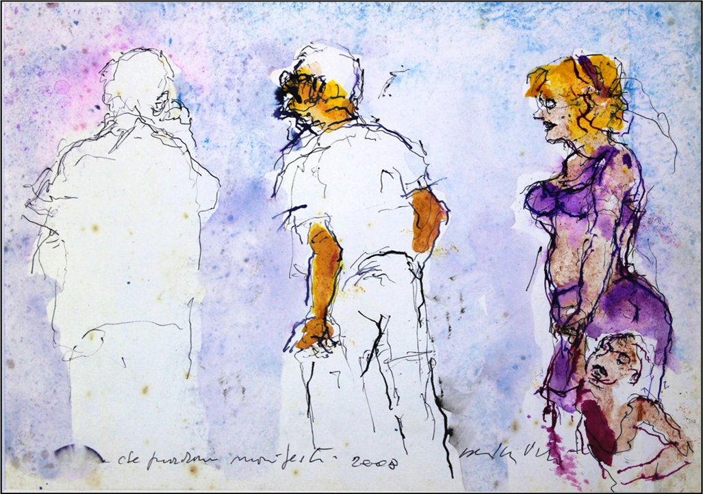 PIACESI WALTER Ascoli Piceno 1929 - Fermignano 2022 "Appunti per figure che guardano" China e acquerello su carta cm 21,3x30 del 2008. Firmato sul fronte in basso a destra, intitolato e datato a sinistra. Sul retro firma, titolo, tecnica, misure, anno e numero d'archivio. Certificato di autenticità del maestro su foto, con numero d'archivio.