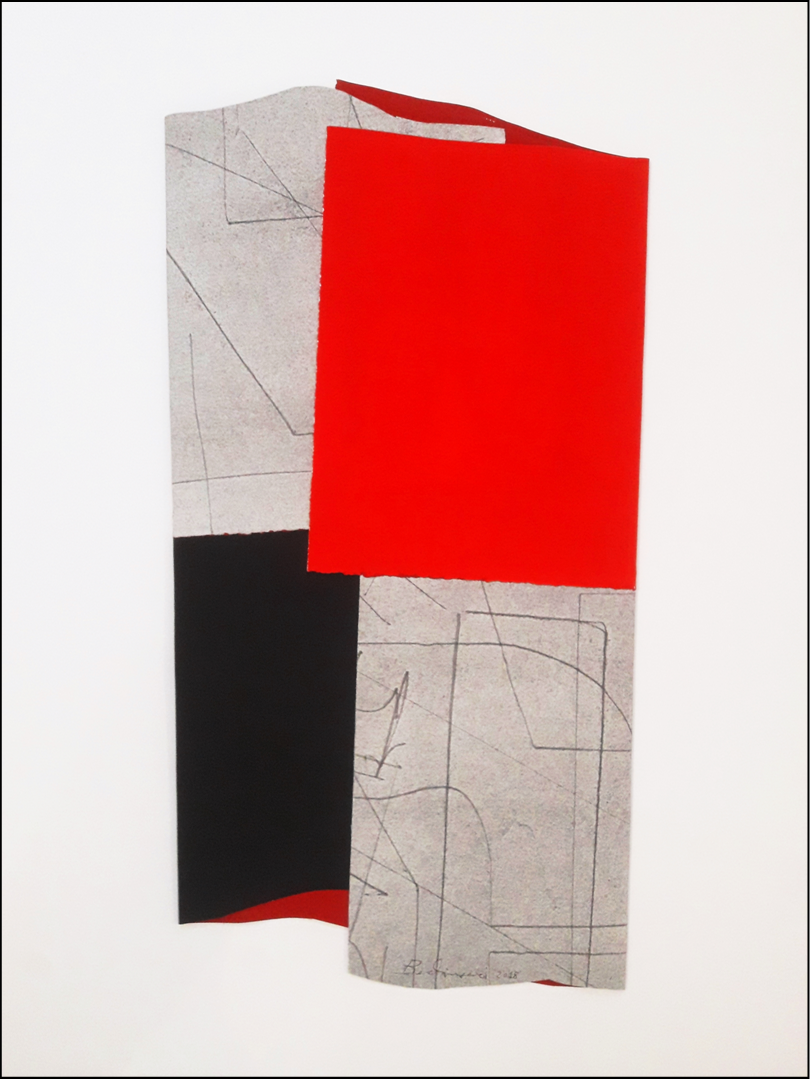 BERLINGERI CESARE Cittanova 1948 "Quattro tempi" Acrilici e pigmento su cartone piegato, cm 35x66 del 2018. Firmata e datata sul fronte in basso al centro. Autentica su foto a cura della Galleria Spirale Arte di Milano. Opera pubblicata a pag. 73 del catalogo "Cesare Berlingeri on paper".