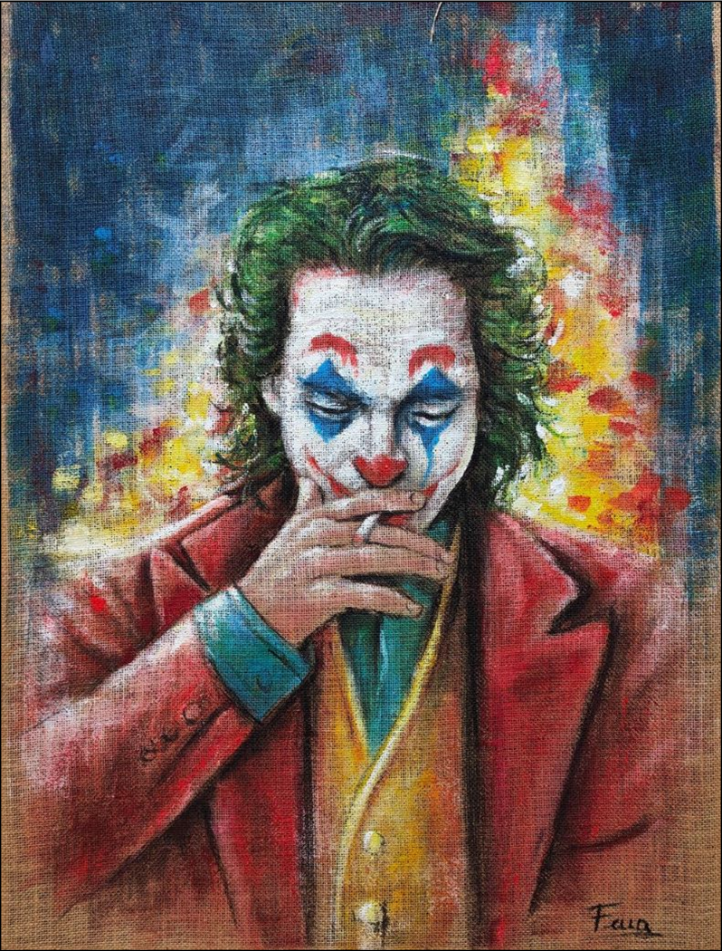FENA Lecce 1958 "Joker" Acrilico e tecnica mista su tela di juta cm 60x80. Firmato sul fronte in basso a destra. Autentica dell'artista su fotografia.