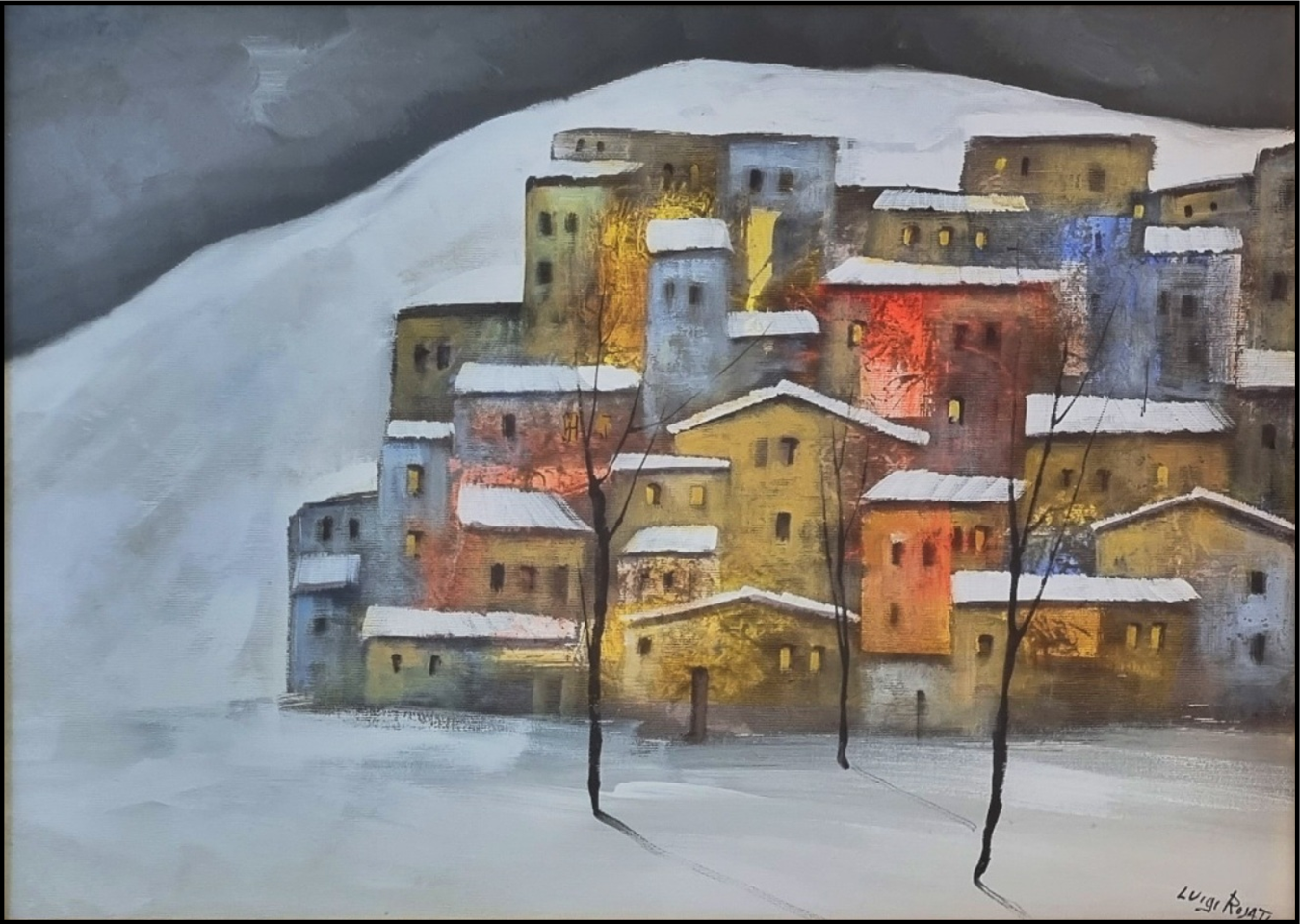 ROSATI LUIGI Roma 1937 "Senza titolo" Olio su tela cm 70x50. Firmato sul fronte in basso a destra. Sul retro timbro per provenienza della Adriatica Arte e timbro di autenticità di DE SANTIS & ROVATTI di Misano Adriatico.