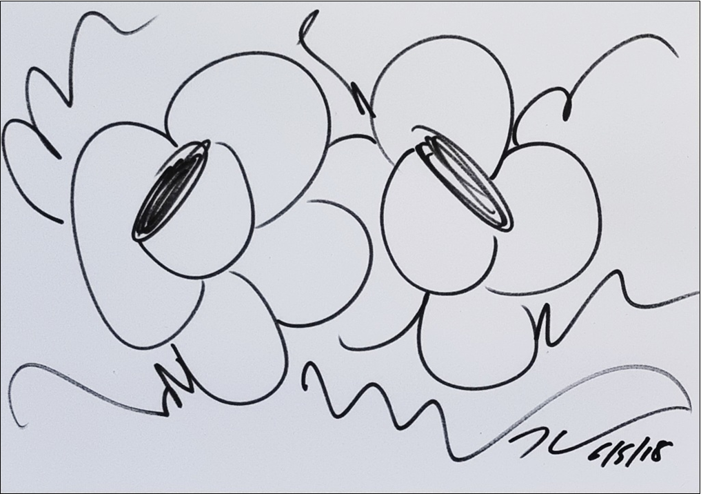 KOONS JEFF Pennsylvania 1955 "Senza titolo" Pennarello su carta cm 29x21 del 2018. Firmato e datato sul fronte in basso a destra. Certificato di autenticità registrato presso Associazione periti calligrafici certificati.