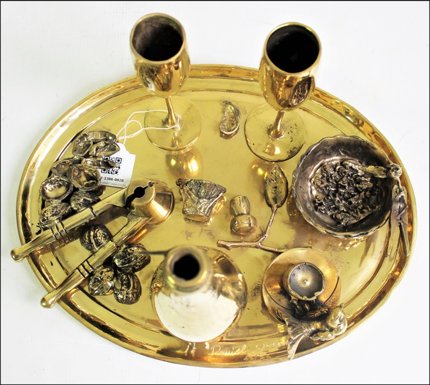 SPOERRI DANIEL Romania 1930 "l'heure bleu" Scultura in bronzo fuso a cera persa in 75 esemplari, a numerazione araba, cm 43,5x33,8x30,3 del 1991. Esemplare n. 47/75. Autentica dell'artista su foto.