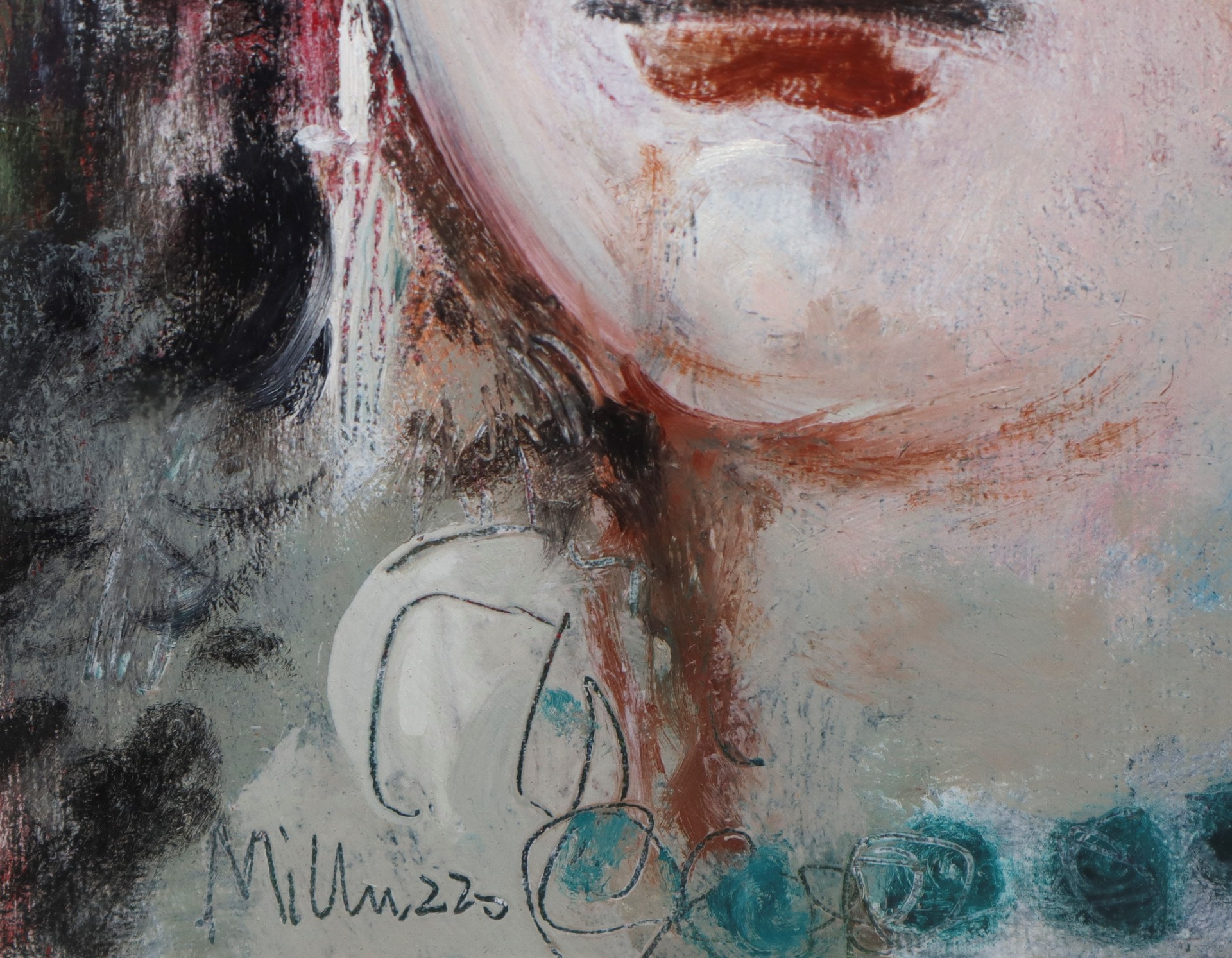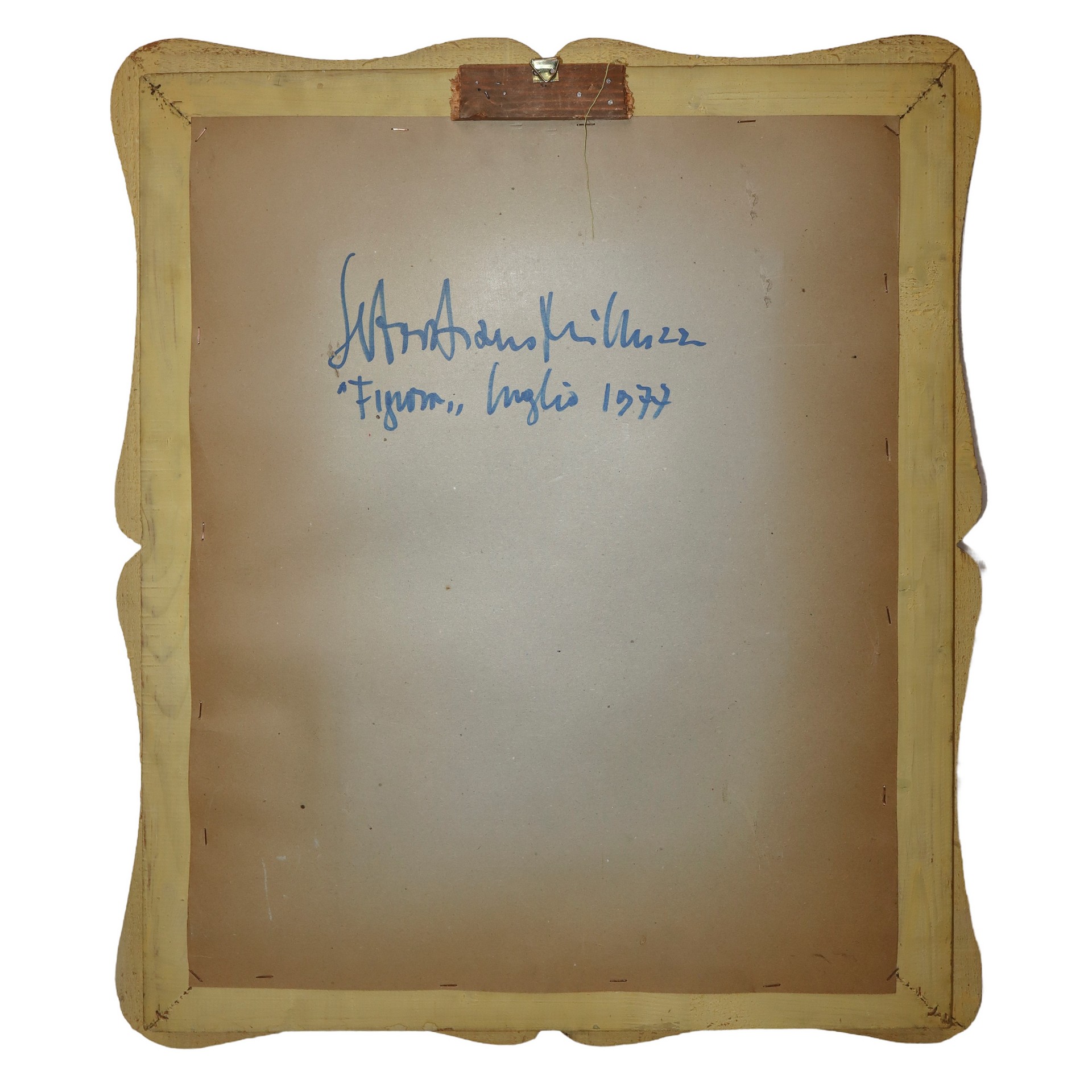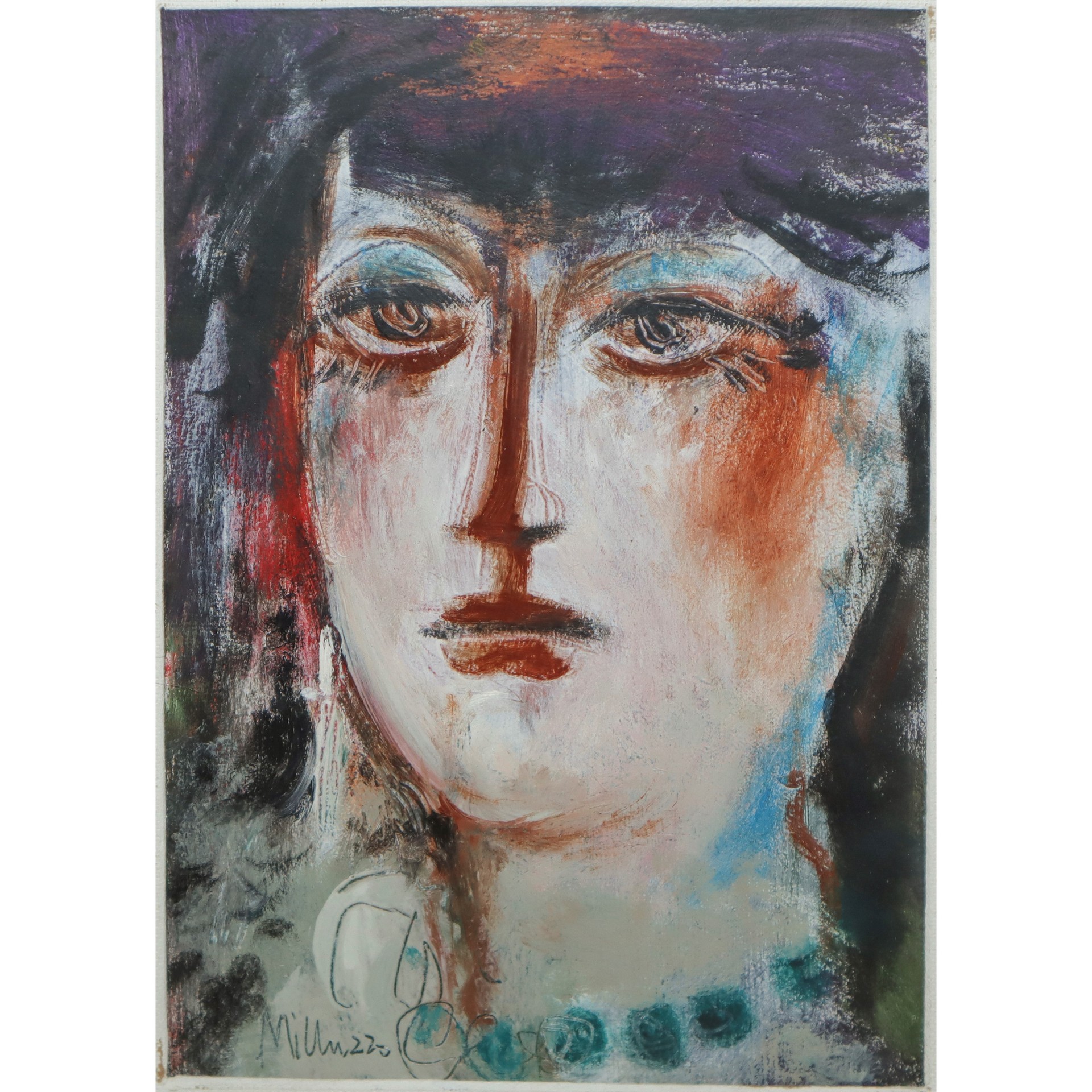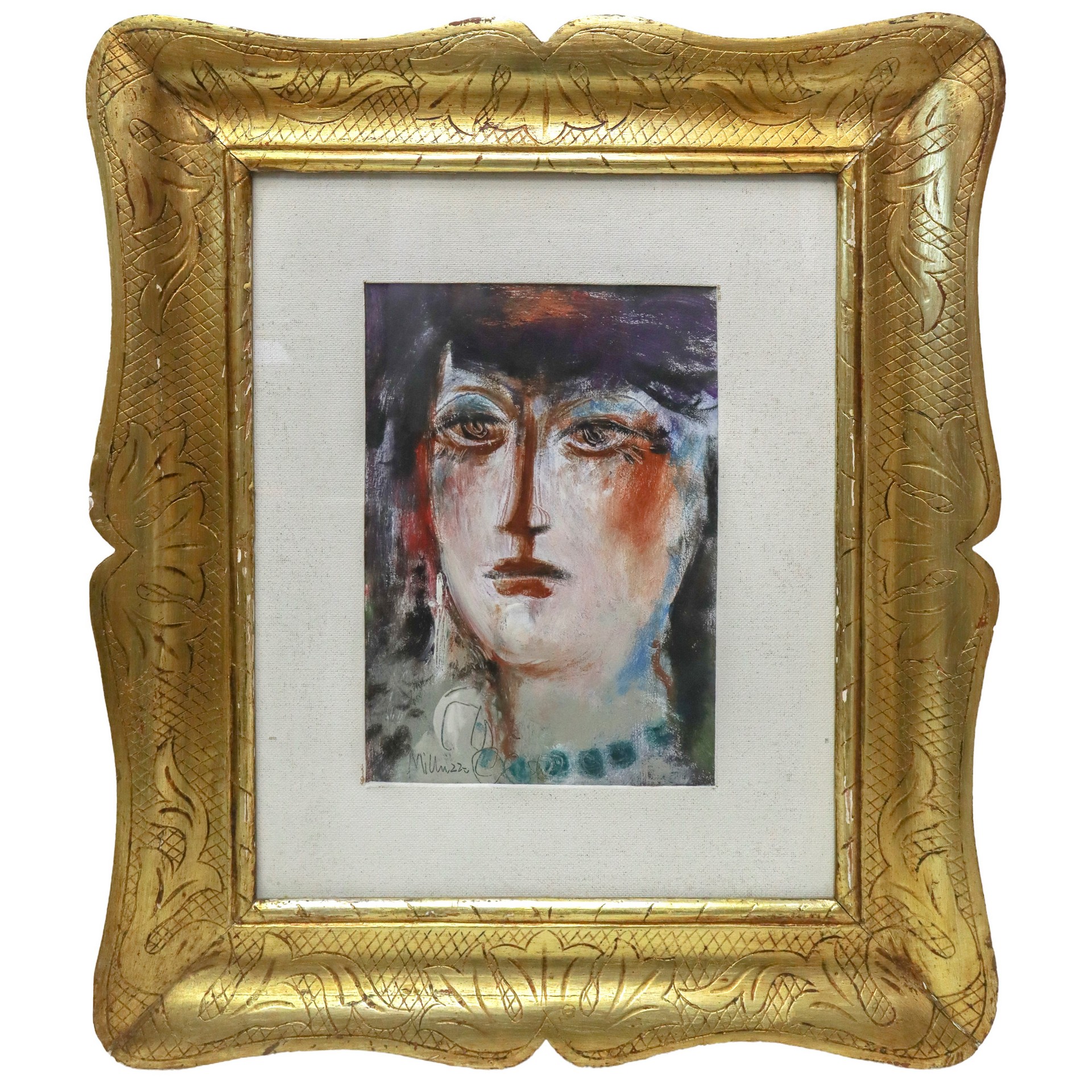 Sebastiano Milluzzo (Catania 1915-Catania 2011) - Figura, Volto di donna, 1977 cm 33x23, in cornice cm 67x58 Firmato in basso a sinistra, firmato, titolato e datato sul retro. In bella cornice dorata a vassoioFirmato in basso a sinistra, firmato, titolato e datato sul retro. In bella cornice dorata a vassoio