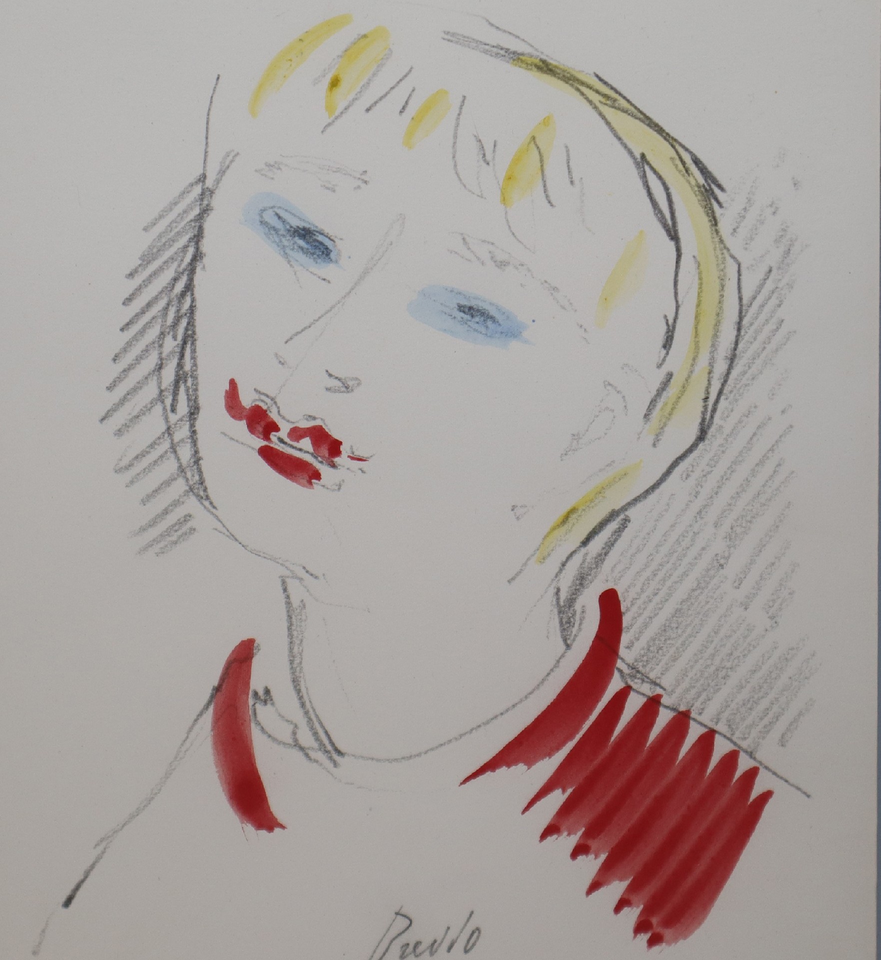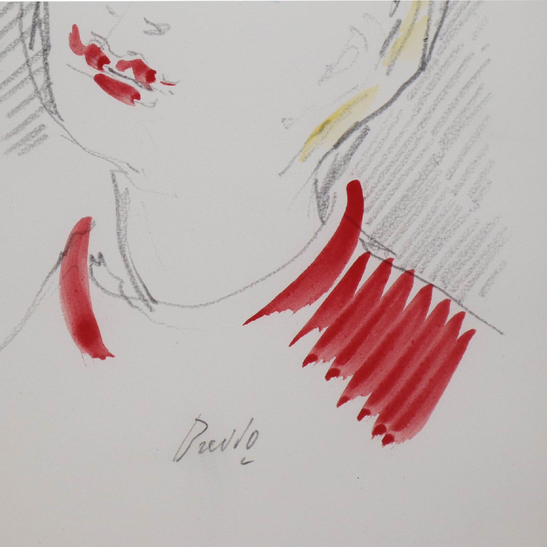 Gastone Breddo - Volto di donna Cm 33 x 23, in cornice 53 x 38 Tecnica mista su carta Firma illeggibile sul fronte