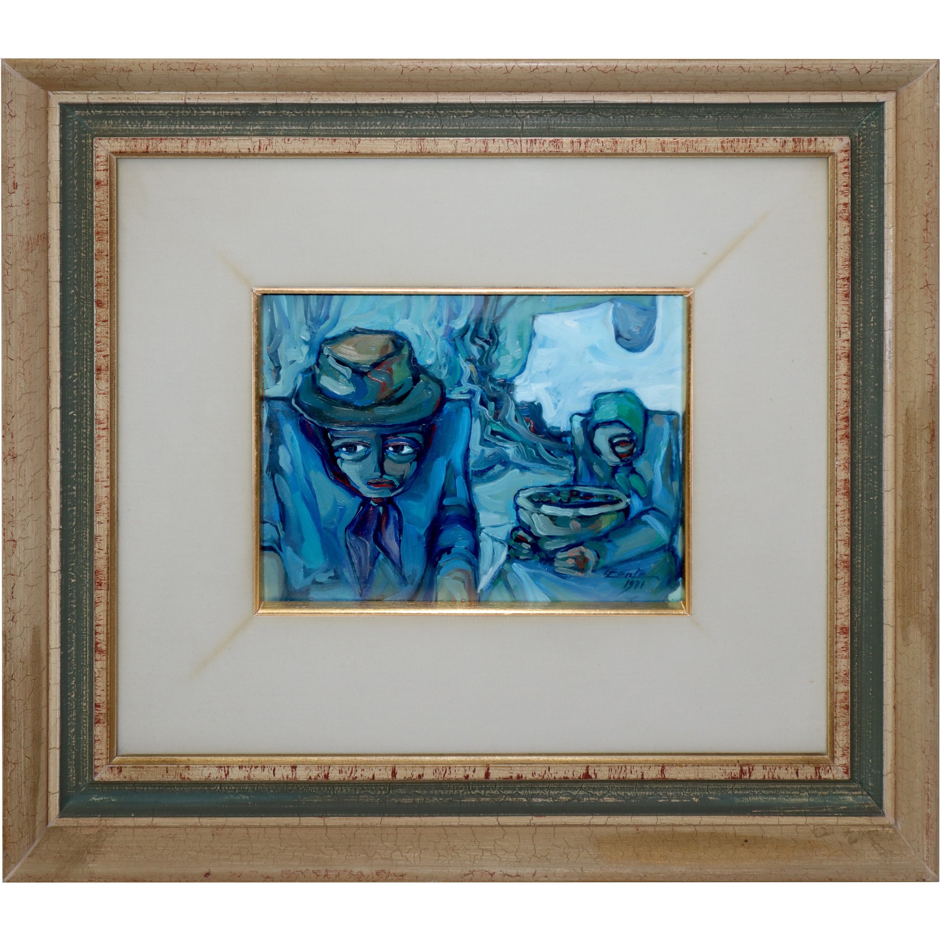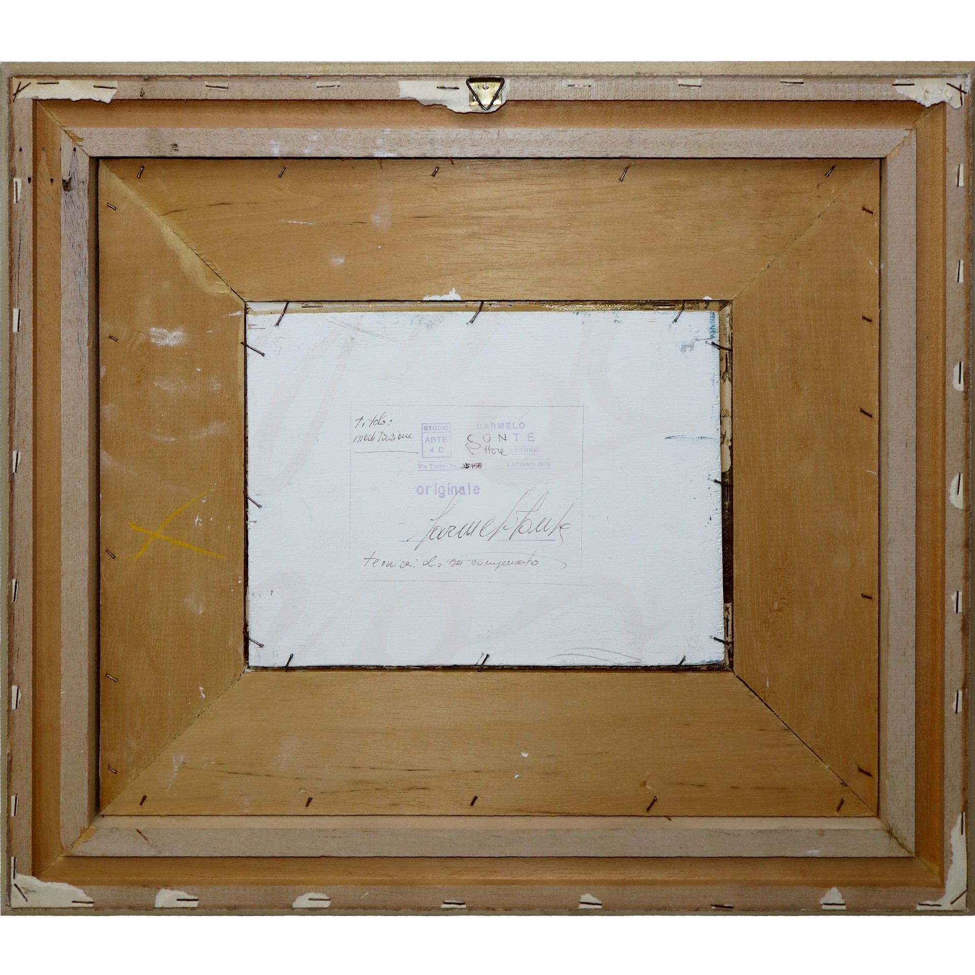 Carmelo Conte (Latiano 1946) - Meditazione, 1988 Cm 18 x 24, in cornice Cm 43 x 49 Olio su compensato Firmato e datato sul fronte in basso a destra, firma titolo tecnica e timbro dell'artista al retro